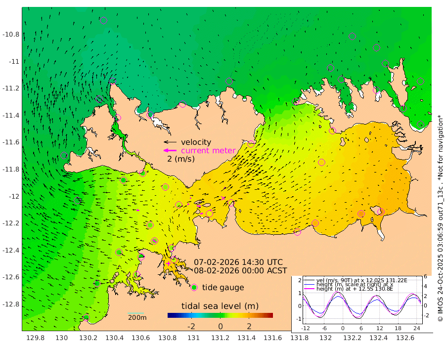 38cm/s 80T +4cm/s rms + 6cm/s 51T. Darwin_C1 52m 25cm/s 90T +4cm/s rms + 7cm/s -161T. Darwin_CW1 22m 25cm/s 69T +4cm/s rms + 8cm/s 61T. Darwin_CW2 34m 39cm/s 45T +3cm/s rms + 9cm/s 98T. Darwin_CW3 22m 59cm/s 92T +5cm/s rms + 7cm/s 88T. Darwin_C3 56m 16cm/s 64T +2cm/s rms + 9cm/s -126T. Darwin_CTbW 22m 48cm/s -81T +1cm/s rms + 1cm/s -47T. DARBGF 30m 62cm/s -52T +4cm/s rms + 3cm/s 80T. NRSDAR 19m -70cm Goodrich Bank 6cm Point Jenny 3cm Native Point 23cm Fish Reef 20cm Tapa Bay -51cm Point Fawcett (Offshore) 43cm Burge Point 7cm Munkunuwa -12cm Beagle A 50cm Parsons Bank 37cm Fenton Patches 57cm Hancox Shoal Area 45cm Nightcliff 71cm Darwin 39cm Charles Point Patches 101cm Glyde Point 157cm Chambers Bay 180cm Point Stuart 112cm Cape Hotham 137cm Christine Reef 204cm West Alligator Head 230cm East Field Island 126cm Two Hills Bay 111cm Camp Point 25cm Medina Inlet South -58cm South Barlow Point -73cm St. Asaph Bay -74cm Cape Van Dieman -69cm Snake Bay -63cm Cache Point -39cm Point Jahleel (Off) 18cm Cape Don -27cm Port Essington -32cm Smith Point - West -27cm NW Peacock Island -46cm North Of Jones Shoal -14cm Peacock Island 2cm Point David -26cm D'urville Point 7cm Copeland Island 1cm One Tree Point