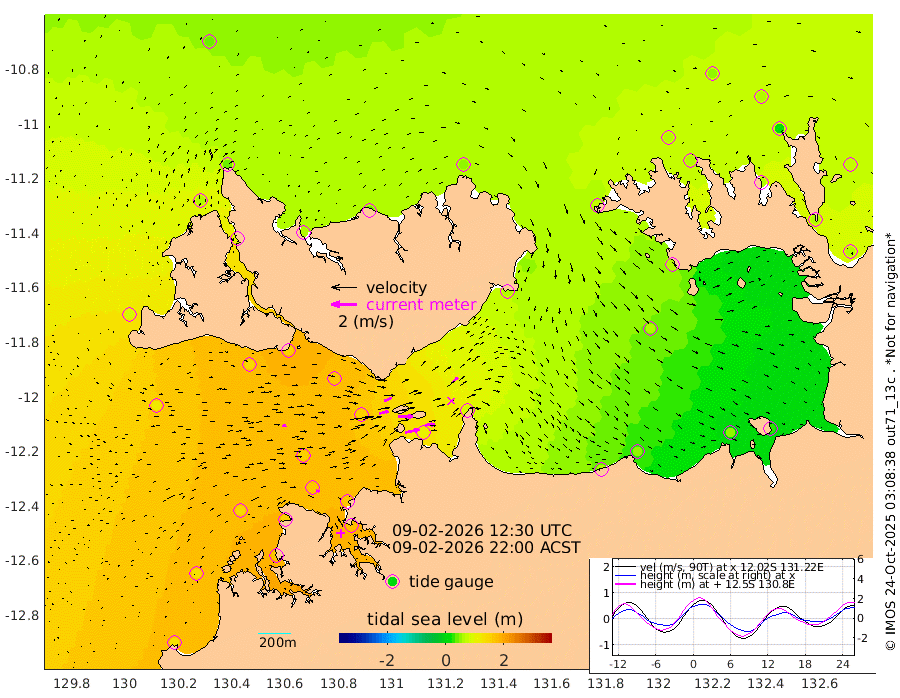 111cm/s 78T +4cm/s rms + 6cm/s 51T. Darwin_C1 52m 75cm/s 88T +4cm/s rms + 7cm/s -161T. Darwin_CW1 22m 73cm/s 74T +4cm/s rms + 8cm/s 61T. Darwin_CW2 34m 57cm/s 46T +3cm/s rms + 9cm/s 98T. Darwin_CW3 22m 114cm/s 89T +5cm/s rms + 7cm/s 88T. Darwin_C3 56m 64cm/s 64T +2cm/s rms + 9cm/s -126T. Darwin_CTbW 22m 31cm/s 83T +1cm/s rms + 1cm/s -47T. DARBGF 30m 27cm/s 107T +4cm/s rms + 3cm/s 80T. NRSDAR 19m 40cm Goodrich Bank 132cm Point Jenny 133cm Native Point 140cm Fish Reef 148cm Tapa Bay 90cm Point Fawcett (Offshore) 158cm Burge Point 144cm Munkunuwa 121cm Beagle A 162cm Parsons Bank 151cm Fenton Patches 153cm Hancox Shoal Area 165cm Nightcliff 176cm Darwin 165cm Charles Point Patches 112cm Glyde Point 64cm Chambers Bay 49cm Point Stuart 87cm Cape Hotham 60cm Christine Reef 46cm West Alligator Head 25cm East Field Island 65cm Two Hills Bay 66cm Camp Point 155cm Medina Inlet South 94cm South Barlow Point 67cm St. Asaph Bay 43cm Cape Van Dieman 57cm Snake Bay 43cm Cache Point 51cm Point Jahleel (Off) 71cm Cape Don 59cm Port Essington 61cm Smith Point - West 59cm NW Peacock Island 53cm North Of Jones Shoal 20cm Peacock Island 67cm Point David 64cm D'urville Point 66cm Copeland Island 69cm One Tree Point