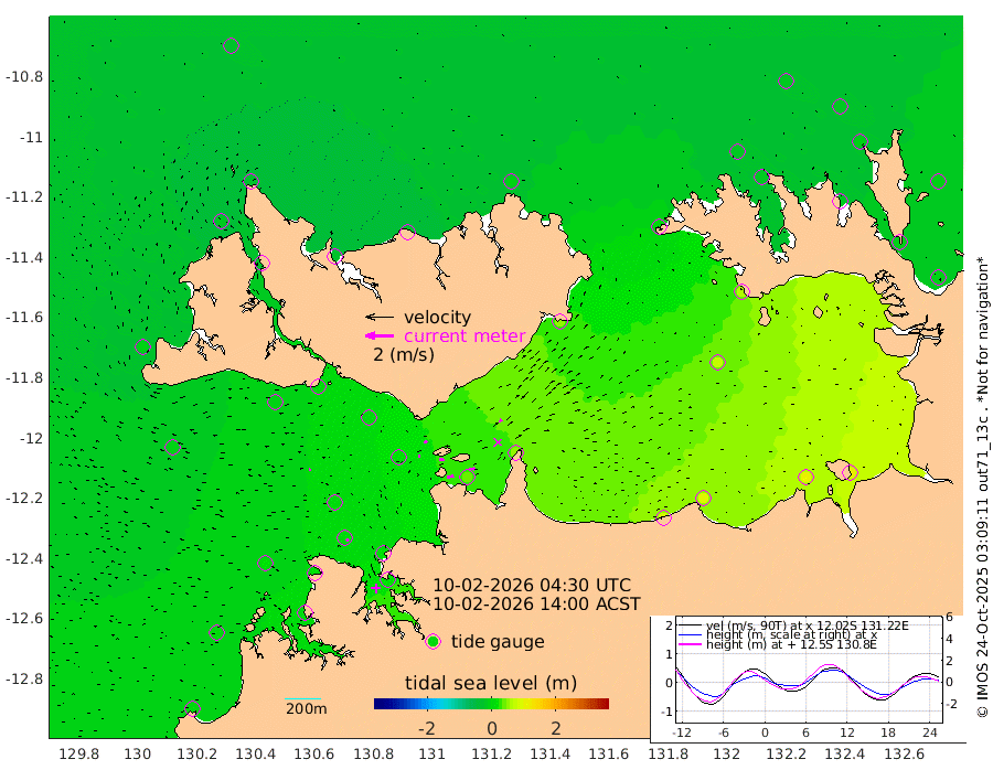 45cm/s 80T +4cm/s rms + 6cm/s 51T. Darwin_C1 52m 46cm/s 91T +4cm/s rms + 7cm/s -161T. Darwin_CW1 22m 11cm/s 76T +4cm/s rms + 8cm/s 61T. Darwin_CW2 34m 25cm/s 46T +3cm/s rms + 9cm/s 98T. Darwin_CW3 22m 34cm/s 91T +5cm/s rms + 7cm/s 88T. Darwin_C3 56m 25cm/s 68T +2cm/s rms + 9cm/s -126T. Darwin_CTbW 22m 13cm/s -79T +1cm/s rms + 1cm/s -47T. DARBGF 30m 20cm/s -51T +4cm/s rms + 3cm/s 80T. NRSDAR 19m -26cm Goodrich Bank 9cm Point Jenny 5cm Native Point 15cm Fish Reef 13cm Tapa Bay -2cm Point Fawcett (Offshore) 6cm Burge Point -1cm Munkunuwa -1cm Beagle A 7cm Parsons Bank 9cm Fenton Patches 21cm Hancox Shoal Area 20cm Nightcliff 17cm Darwin 9cm Charles Point Patches 43cm Glyde Point 83cm Chambers Bay 94cm Point Stuart 56cm Cape Hotham 70cm Christine Reef 108cm West Alligator Head 121cm East Field Island 67cm Two Hills Bay 50cm Camp Point 7cm Medina Inlet South -26cm South Barlow Point -20cm St. Asaph Bay -28cm Cape Van Dieman -30cm Snake Bay -17cm Cache Point -9cm Point Jahleel (Off) 10cm Cape Don -14cm Port Essington -12cm Smith Point - West -14cm NW Peacock Island -12cm North Of Jones Shoal -4cm Peacock Island -9cm Point David -15cm D'urville Point -6cm Copeland Island -7cm One Tree Point