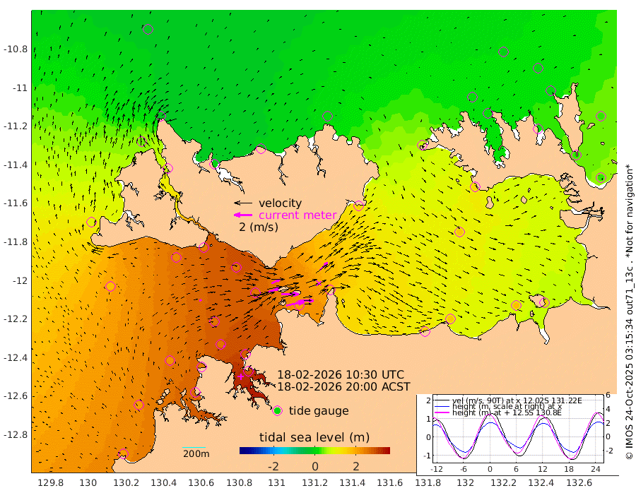 202cm/s 78T +4cm/s rms + 6cm/s 51T. Darwin_C1 52m 151cm/s 93T +4cm/s rms + 7cm/s -161T. Darwin_CW1 22m 128cm/s 72T +4cm/s rms + 8cm/s 61T. Darwin_CW2 34m 121cm/s 45T +3cm/s rms + 9cm/s 98T. Darwin_CW3 22m 196cm/s 89T +5cm/s rms + 7cm/s 88T. Darwin_C3 56m 101cm/s 66T +2cm/s rms + 9cm/s -126T. Darwin_CTbW 22m 23cm/s 65T +1cm/s rms + 1cm/s -47T. DARBGF 30m 13cm/s 68T +4cm/s rms + 3cm/s 80T. NRSDAR 19m -15cm Goodrich Bank 208cm Point Jenny 207cm Native Point 221cm Fish Reef 239cm Tapa Bay 90cm Point Fawcett (Offshore) 267cm Burge Point 227cm Munkunuwa 178cm Beagle A 255cm Parsons Bank 254cm Fenton Patches 254cm Hancox Shoal Area 277cm Nightcliff 290cm Darwin 256cm Charles Point Patches 212cm Glyde Point 179cm Chambers Bay 163cm Point Stuart 177cm Cape Hotham 165cm Christine Reef 176cm West Alligator Head 166cm East Field Island 143cm Two Hills Bay 151cm Camp Point 239cm Medina Inlet South 76cm South Barlow Point 39cm St. Asaph Bay -13cm Cape Van Dieman -3cm Snake Bay -9cm Cache Point 15cm Point Jahleel (Off) 74cm Cape Don 18cm Port Essington 17cm Smith Point - West 11cm NW Peacock Island -2cm North Of Jones Shoal 0cm Peacock Island 26cm Point David 17cm D'urville Point 28cm Copeland Island 28cm One Tree Point