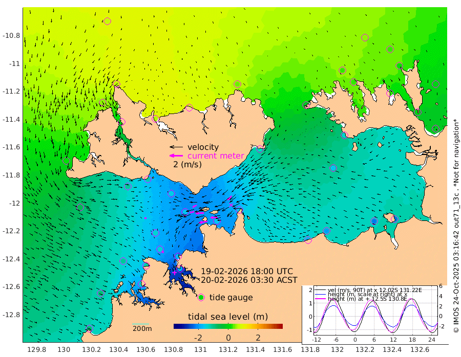 131cm/s -100T +4cm/s rms + 6cm/s 51T. Darwin_C1 52m 102cm/s -92T +4cm/s rms + 7cm/s -161T. Darwin_CW1 22m 63cm/s -106T +4cm/s rms + 8cm/s 61T. Darwin_CW2 34m 89cm/s -137T +3cm/s rms + 9cm/s 98T. Darwin_CW3 22m 120cm/s -91T +5cm/s rms + 7cm/s 88T. Darwin_C3 56m 66cm/s -116T +2cm/s rms + 9cm/s -126T. Darwin_CTbW 22m 28cm/s 109T +1cm/s rms + 1cm/s -47T. DARBGF 30m 37cm/s 139T +4cm/s rms + 3cm/s 80T. NRSDAR 19m 76cm Goodrich Bank -89cm Point Jenny -87cm Native Point -106cm Fish Reef -123cm Tapa Bay 12cm Point Fawcett (Offshore) -145cm Burge Point -107cm Munkunuwa -63cm Beagle A -151cm Parsons Bank -140cm Fenton Patches -164cm Hancox Shoal Area -171cm Nightcliff -182cm Darwin -137cm Charles Point Patches -163cm Glyde Point -188cm Chambers Bay -193cm Point Stuart -159cm Cape Hotham -167cm Christine Reef -218cm West Alligator Head -231cm East Field Island -146cm Two Hills Bay -141cm Camp Point -120cm Medina Inlet South 21cm South Barlow Point 48cm St. Asaph Bay 78cm Cape Van Dieman 67cm Snake Bay 69cm Cache Point 35cm Point Jahleel (Off) -28cm Cape Don 31cm Port Essington 30cm Smith Point - West 30cm NW Peacock Island 48cm North Of Jones Shoal 15cm Peacock Island -6cm Point David 25cm D'urville Point -12cm Copeland Island -1cm One Tree Point