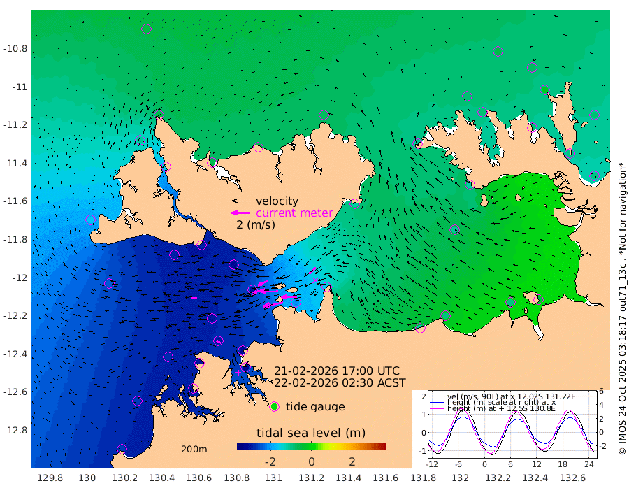233cm/s -102T +4cm/s rms + 6cm/s 51T. Darwin_C1 52m 174cm/s -90T +4cm/s rms + 7cm/s -161T. Darwin_CW1 22m 141cm/s -107T +4cm/s rms + 8cm/s 61T. Darwin_CW2 34m 101cm/s -131T +3cm/s rms + 9cm/s 98T. Darwin_CW3 22m 195cm/s -91T +5cm/s rms + 7cm/s 88T. Darwin_C3 56m 130cm/s -115T +2cm/s rms + 9cm/s -126T. Darwin_CTbW 22m 65cm/s -95T +1cm/s rms + 1cm/s -47T. DARBGF 30m 50cm/s -69T +4cm/s rms + 3cm/s 80T. NRSDAR 19m -46cm Goodrich Bank -263cm Point Jenny -263cm Native Point -275cm Fish Reef -294cm Tapa Bay -162cm Point Fawcett (Offshore) -306cm Burge Point -284cm Munkunuwa -238cm Beagle A -305cm Parsons Bank -297cm Fenton Patches -293cm Hancox Shoal Area -307cm Nightcliff -323cm Darwin -303cm Charles Point Patches -207cm Glyde Point -115cm Chambers Bay -96cm Point Stuart -163cm Cape Hotham -111cm Christine Reef -93cm West Alligator Head -53cm East Field Island -114cm Two Hills Bay -114cm Camp Point -286cm Medina Inlet South -149cm South Barlow Point -109cm St. Asaph Bay -55cm Cape Van Dieman -64cm Snake Bay -55cm Cache Point -70cm Point Jahleel (Off) -106cm Cape Don -79cm Port Essington -85cm Smith Point - West -78cm NW Peacock Island -55cm North Of Jones Shoal -21cm Peacock Island -93cm Point David -88cm D'urville Point -93cm Copeland Island -87cm One Tree Point