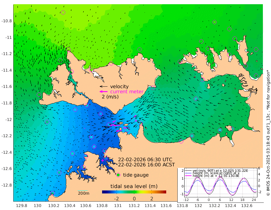 155cm/s -101T +4cm/s rms + 6cm/s 51T. Darwin_C1 52m 112cm/s -90T +4cm/s rms + 7cm/s -161T. Darwin_CW1 22m 96cm/s -107T +4cm/s rms + 8cm/s 61T. Darwin_CW2 34m 79cm/s -134T +3cm/s rms + 9cm/s 98T. Darwin_CW3 22m 156cm/s -91T +5cm/s rms + 7cm/s 88T. Darwin_C3 56m 83cm/s -115T +2cm/s rms + 9cm/s -126T. Darwin_CTbW 22m 10cm/s -134T +1cm/s rms + 1cm/s -47T. DARBGF 30m 12cm/s -154T +4cm/s rms + 3cm/s 80T. NRSDAR 19m 54cm Goodrich Bank -133cm Point Jenny -132cm Native Point -142cm Fish Reef -163cm Tapa Bay -27cm Point Fawcett (Offshore) -183cm Burge Point -162cm Munkunuwa -90cm Beagle A -195cm Parsons Bank -162cm Fenton Patches -190cm Hancox Shoal Area -191cm Nightcliff -210cm Darwin -173cm Charles Point Patches -153cm Glyde Point -136cm Chambers Bay -133cm Point Stuart -133cm Cape Hotham -124cm Christine Reef -146cm West Alligator Head -132cm East Field Island -112cm Two Hills Bay -106cm Camp Point -161cm Medina Inlet South -21cm South Barlow Point 16cm St. Asaph Bay 50cm Cape Van Dieman 41cm Snake Bay 47cm Cache Point 20cm Point Jahleel (Off) -44cm Cape Don 4cm Port Essington 5cm Smith Point - West 6cm NW Peacock Island 30cm North Of Jones Shoal 7cm Peacock Island -30cm Point David -2cm D'urville Point -34cm Copeland Island -24cm One Tree Point