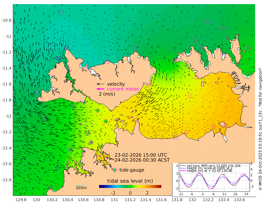 22cm/s 82T +4cm/s rms + 6cm/s 51T. Darwin_C1 52m 12cm/s 85T +4cm/s rms + 7cm/s -161T. Darwin_CW1 22m 4cm/s 28T +4cm/s rms + 8cm/s 61T. Darwin_CW2 34m 36cm/s 42T +3cm/s rms + 9cm/s 98T. Darwin_CW3 22m 26cm/s 95T +5cm/s rms + 7cm/s 88T. Darwin_C3 56m 9cm/s 62T +2cm/s rms + 9cm/s -126T. Darwin_CTbW 22m 63cm/s -84T +1cm/s rms + 1cm/s -47T. DARBGF 30m 74cm/s -54T +4cm/s rms + 3cm/s 80T. NRSDAR 19m -102cm Goodrich Bank -41cm Point Jenny -43cm Native Point -35cm Fish Reef -26cm Tapa Bay -102cm Point Fawcett (Offshore) -8cm Burge Point -42cm Munkunuwa -60cm Beagle A 4cm Parsons Bank -10cm Fenton Patches 20cm Hancox Shoal Area 10cm Nightcliff 17cm Darwin -21cm Charles Point Patches 68cm Glyde Point 141cm Chambers Bay 166cm Point Stuart 89cm Cape Hotham 127cm Christine Reef 191cm West Alligator Head 224cm East Field Island 106cm Two Hills Bay 96cm Camp Point -31cm Medina Inlet South -102cm South Barlow Point -114cm St. Asaph Bay -106cm Cape Van Dieman -99cm Snake Bay -97cm Cache Point -68cm Point Jahleel (Off) -12cm Cape Don -59cm Port Essington -61cm Smith Point - West -53cm NW Peacock Island -75cm North Of Jones Shoal -23cm Peacock Island -8cm Point David -51cm D'urville Point -2cm Copeland Island -17cm One Tree Point