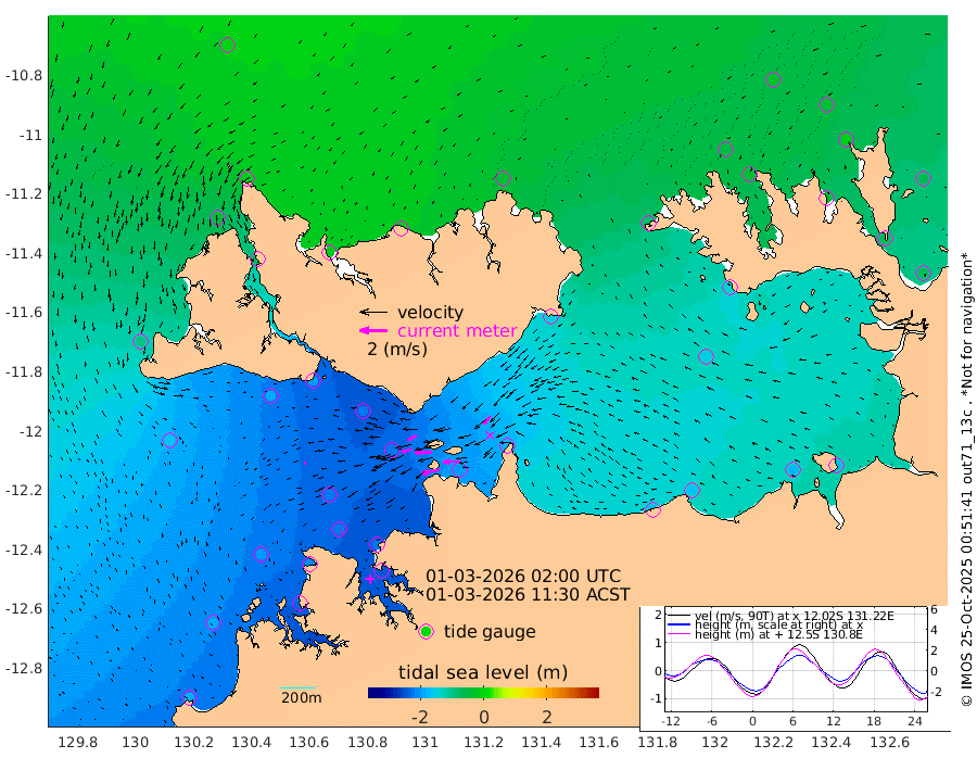 136cm/s -101T +4cm/s rms + 6cm/s 51T. Darwin_C1 52m 124cm/s -91T +4cm/s rms + 7cm/s -161T. Darwin_CW1 22m 71cm/s -106T +4cm/s rms + 8cm/s 61T. Darwin_CW2 34m 82cm/s -138T +3cm/s rms + 9cm/s 98T. Darwin_CW3 22m 118cm/s -90T +5cm/s rms + 7cm/s 88T. Darwin_C3 56m 73cm/s -115T +2cm/s rms + 9cm/s -126T. Darwin_CTbW 22m 15cm/s -114T +1cm/s rms + 1cm/s -47T. DARBGF 30m 8cm/s -99T +4cm/s rms + 3cm/s 80T. NRSDAR 19m -8cm Goodrich Bank -187cm Point Jenny -184cm Native Point -196cm Fish Reef -208cm Tapa Bay -96cm Point Fawcett (Offshore) -231cm Burge Point -182cm Munkunuwa -162cm Beagle A -214cm Parsons Bank -217cm Fenton Patches -216cm Hancox Shoal Area -225cm Nightcliff -243cm Darwin -223cm Charles Point Patches -193cm Glyde Point -173cm Chambers Bay -168cm Point Stuart -172cm Cape Hotham -157cm Christine Reef -177cm West Alligator Head -173cm East Field Island -145cm Two Hills Bay -154cm Camp Point -199cm Medina Inlet South -72cm South Barlow Point -47cm St. Asaph Bay -12cm Cape Van Dieman -16cm Snake Bay -21cm Cache Point -36cm Point Jahleel (Off) -89cm Cape Don -46cm Port Essington -41cm Smith Point - West -40cm NW Peacock Island -24cm North Of Jones Shoal -11cm Peacock Island -67cm Point David -45cm D'urville Point -68cm Copeland Island -64cm One Tree Point