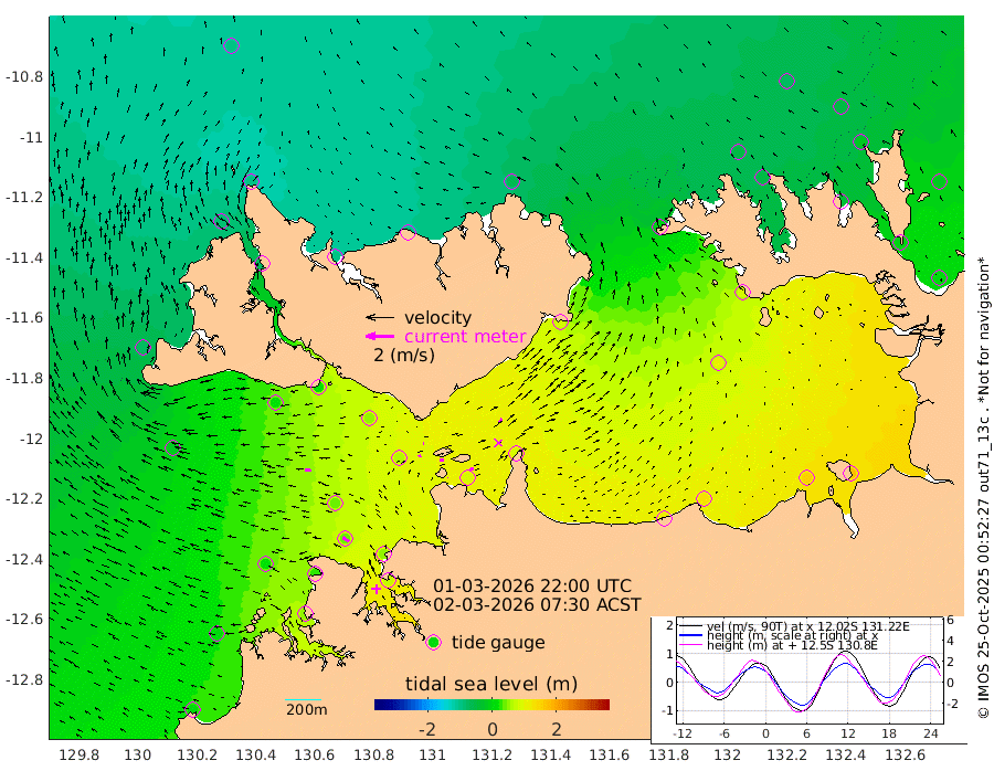 4cm/s 110T +4cm/s rms + 6cm/s 51T. Darwin_C1 52m 27cm/s 86T +4cm/s rms + 7cm/s -161T. Darwin_CW1 22m 17cm/s 63T +4cm/s rms + 8cm/s 61T. Darwin_CW2 34m 29cm/s 33T +3cm/s rms + 9cm/s 98T. Darwin_CW3 22m 33cm/s 90T +5cm/s rms + 7cm/s 88T. Darwin_C3 56m 8cm/s -115T +2cm/s rms + 9cm/s -126T. Darwin_CTbW 22m 43cm/s -83T +1cm/s rms + 1cm/s -47T. DARBGF 30m 52cm/s -54T +4cm/s rms + 3cm/s 80T. NRSDAR 19m -92cm Goodrich Bank 4cm Point Jenny 2cm Native Point 16cm Fish Reef 25cm Tapa Bay -70cm Point Fawcett (Offshore) 49cm Burge Point 14cm Munkunuwa -13cm Beagle A 54cm Parsons Bank 45cm Fenton Patches 66cm Hancox Shoal Area 55cm Nightcliff 71cm Darwin 41cm Charles Point Patches 82cm Glyde Point 118cm Chambers Bay 131cm Point Stuart 89cm Cape Hotham 103cm Christine Reef 147cm West Alligator Head 169cm East Field Island 82cm Two Hills Bay 87cm Camp Point 20cm Medina Inlet South -71cm South Barlow Point -87cm St. Asaph Bay -94cm Cape Van Dieman -92cm Snake Bay -87cm Cache Point -62cm Point Jahleel (Off) -11cm Cape Don -48cm Port Essington -52cm Smith Point - West -46cm NW Peacock Island -69cm North Of Jones Shoal -21cm Peacock Island -6cm Point David -43cm D'urville Point 2cm Copeland Island -16cm One Tree Point