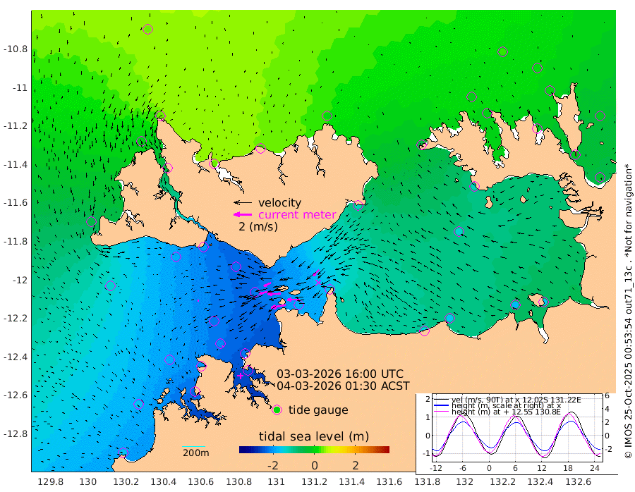 168cm/s -101T +4cm/s rms + 6cm/s 51T. Darwin_C1 52m 137cm/s -91T +4cm/s rms + 7cm/s -161T. Darwin_CW1 22m 90cm/s -106T +4cm/s rms + 8cm/s 61T. Darwin_CW2 34m 93cm/s -136T +3cm/s rms + 9cm/s 98T. Darwin_CW3 22m 141cm/s -91T +5cm/s rms + 7cm/s 88T. Darwin_C3 56m 88cm/s -116T +2cm/s rms + 9cm/s -126T. Darwin_CTbW 22m 14cm/s -120T +1cm/s rms + 1cm/s -47T. DARBGF 30m 11cm/s -119T +4cm/s rms + 3cm/s 80T. NRSDAR 19m 43cm Goodrich Bank -166cm Point Jenny -163cm Native Point -190cm Fish Reef -195cm Tapa Bay -53cm Point Fawcett (Offshore) -225cm Burge Point -188cm Munkunuwa -143cm Beagle A -221cm Parsons Bank -218cm Fenton Patches -216cm Hancox Shoal Area -225cm Nightcliff -246cm Darwin -210cm Charles Point Patches -186cm Glyde Point -157cm Chambers Bay -159cm Point Stuart -163cm Cape Hotham -142cm Christine Reef -173cm West Alligator Head -166cm East Field Island -132cm Two Hills Bay -128cm Camp Point -194cm Medina Inlet South -39cm South Barlow Point -4cm St. Asaph Bay 40cm Cape Van Dieman 35cm Snake Bay 34cm Cache Point 7cm Point Jahleel (Off) -52cm Cape Don -2cm Port Essington -3cm Smith Point - West 2cm NW Peacock Island 26cm North Of Jones Shoal 6cm Peacock Island -22cm Point David -6cm D'urville Point -28cm Copeland Island -18cm One Tree Point