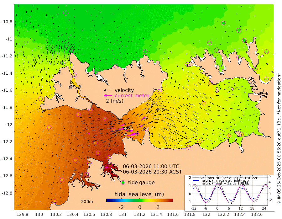 202cm/s 78T +4cm/s rms + 6cm/s 51T. Darwin_C1 52m 151cm/s 93T +4cm/s rms + 7cm/s -161T. Darwin_CW1 22m 129cm/s 72T +4cm/s rms + 8cm/s 61T. Darwin_CW2 34m 116cm/s 45T +3cm/s rms + 9cm/s 98T. Darwin_CW3 22m 205cm/s 89T +5cm/s rms + 7cm/s 88T. Darwin_C3 56m 97cm/s 65T +2cm/s rms + 9cm/s -126T. Darwin_CTbW 22m 29cm/s 72T +1cm/s rms + 1cm/s -47T. DARBGF 30m 19cm/s 87T +4cm/s rms + 3cm/s 80T. NRSDAR 19m -11cm Goodrich Bank 201cm Point Jenny 200cm Native Point 228cm Fish Reef 235cm Tapa Bay 94cm Point Fawcett (Offshore) 261cm Burge Point 229cm Munkunuwa 172cm Beagle A 263cm Parsons Bank 247cm Fenton Patches 252cm Hancox Shoal Area 261cm Nightcliff 294cm Darwin 260cm Charles Point Patches 211cm Glyde Point 161cm Chambers Bay 157cm Point Stuart 177cm Cape Hotham 141cm Christine Reef 167cm West Alligator Head 149cm East Field Island 144cm Two Hills Bay 139cm Camp Point 241cm Medina Inlet South 83cm South Barlow Point 39cm St. Asaph Bay -7cm Cape Van Dieman 7cm Snake Bay -3cm Cache Point 22cm Point Jahleel (Off) 83cm Cape Don 38cm Port Essington 35cm Smith Point - West 31cm NW Peacock Island 9cm North Of Jones Shoal 6cm Peacock Island 55cm Point David 40cm D'urville Point 58cm Copeland Island 55cm One Tree Point