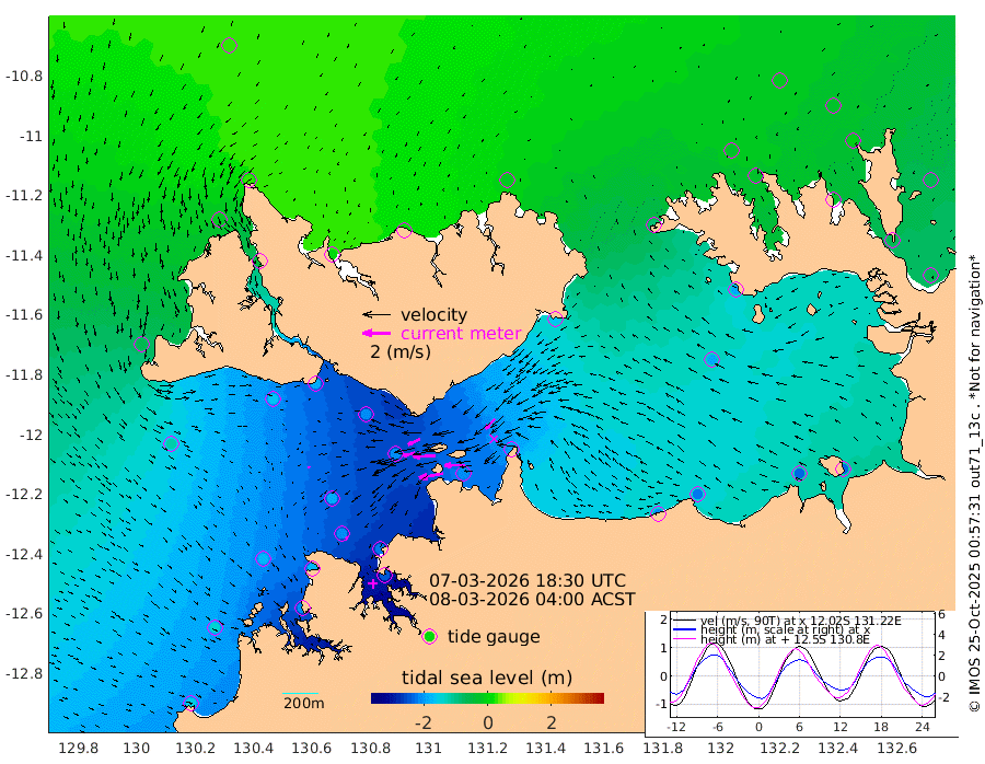 177cm/s -101T +4cm/s rms + 6cm/s 51T. Darwin_C1 52m 145cm/s -91T +4cm/s rms + 7cm/s -161T. Darwin_CW1 22m 84cm/s -105T +4cm/s rms + 8cm/s 61T. Darwin_CW2 34m 99cm/s -136T +3cm/s rms + 9cm/s 98T. Darwin_CW3 22m 161cm/s -90T +5cm/s rms + 7cm/s 88T. Darwin_C3 56m 93cm/s -115T +2cm/s rms + 9cm/s -126T. Darwin_CTbW 22m 10cm/s 152T +1cm/s rms + 1cm/s -47T. DARBGF 30m 21cm/s 153T +4cm/s rms + 3cm/s 80T. NRSDAR 19m 25cm Goodrich Bank -150cm Point Jenny -145cm Native Point -176cm Fish Reef -180cm Tapa Bay -62cm Point Fawcett (Offshore) -204cm Burge Point -163cm Munkunuwa -121cm Beagle A -210cm Parsons Bank -190cm Fenton Patches -212cm Hancox Shoal Area -217cm Nightcliff -244cm Darwin -208cm Charles Point Patches -204cm Glyde Point -204cm Chambers Bay -214cm Point Stuart -195cm Cape Hotham -183cm Christine Reef -233cm West Alligator Head -235cm East Field Island -180cm Two Hills Bay -164cm Camp Point -186cm Medina Inlet South -43cm South Barlow Point -12cm St. Asaph Bay 24cm Cape Van Dieman 11cm Snake Bay 11cm Cache Point -17cm Point Jahleel (Off) -84cm Cape Don -30cm Port Essington -29cm Smith Point - West -28cm NW Peacock Island -13cm North Of Jones Shoal -7cm Peacock Island -58cm Point David -34cm D'urville Point -63cm Copeland Island -61cm One Tree Point