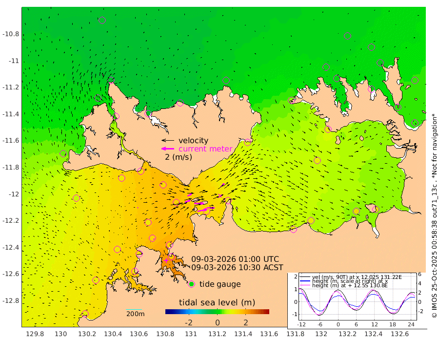 151cm/s 79T +4cm/s rms + 6cm/s 51T. Darwin_C1 52m 114cm/s 93T +4cm/s rms + 7cm/s -161T. Darwin_CW1 22m 90cm/s 72T +4cm/s rms + 8cm/s 61T. Darwin_CW2 34m 81cm/s 47T +3cm/s rms + 9cm/s 98T. Darwin_CW3 22m 152cm/s 89T +5cm/s rms + 7cm/s 88T. Darwin_C3 56m 75cm/s 66T +2cm/s rms + 9cm/s -126T. Darwin_CTbW 22m 8cm/s 33T +1cm/s rms + 1cm/s -47T. DARBGF 30m 13cm/s -20T +4cm/s rms + 3cm/s 80T. NRSDAR 19m -29cm Goodrich Bank 105cm Point Jenny 103cm Native Point 119cm Fish Reef 132cm Tapa Bay 42cm Point Fawcett (Offshore) 131cm Burge Point 123cm Munkunuwa 72cm Beagle A 146cm Parsons Bank 122cm Fenton Patches 152cm Hancox Shoal Area 153cm Nightcliff 167cm Darwin 143cm Charles Point Patches 132cm Glyde Point 132cm Chambers Bay 134cm Point Stuart 124cm Cape Hotham 114cm Christine Reef 149cm West Alligator Head 142cm East Field Island 113cm Two Hills Bay 97cm Camp Point 130cm Medina Inlet South 23cm South Barlow Point 3cm St. Asaph Bay -28cm Cape Van Dieman -20cm Snake Bay -20cm Cache Point 1cm Point Jahleel (Off) 46cm Cape Don 7cm Port Essington 9cm Smith Point - West 5cm NW Peacock Island -4cm North Of Jones Shoal 0cm Peacock Island 26cm Point David 10cm D'urville Point 30cm Copeland Island 26cm One Tree Point
