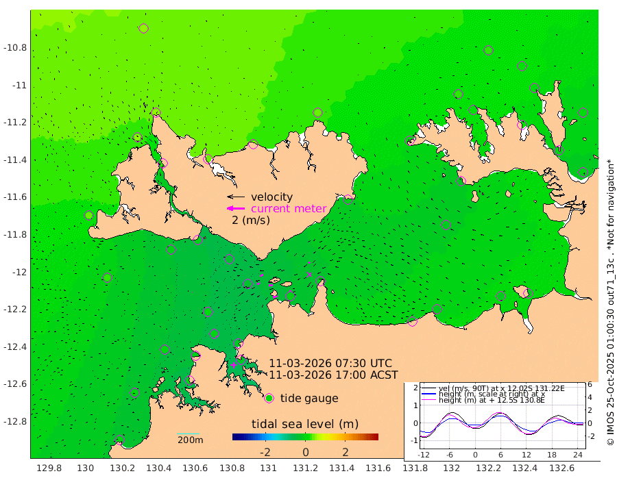 57cm/s -102T +4cm/s rms + 6cm/s 51T. Darwin_C1 52m 22cm/s -91T +4cm/s rms + 7cm/s -161T. Darwin_CW1 22m 31cm/s -108T +4cm/s rms + 8cm/s 61T. Darwin_CW2 34m 22cm/s -129T +3cm/s rms + 9cm/s 98T. Darwin_CW3 22m 42cm/s -91T +5cm/s rms + 7cm/s 88T. Darwin_C3 56m 38cm/s -115T +2cm/s rms + 9cm/s -126T. Darwin_CTbW 22m 2cm/s 137T +1cm/s rms + 1cm/s -47T. DARBGF 30m 6cm/s 179T +4cm/s rms + 3cm/s 80T. NRSDAR 19m 50cm Goodrich Bank 9cm Point Jenny 10cm Native Point 7cm Fish Reef 0cm Tapa Bay 39cm Point Fawcett (Offshore) 0cm Burge Point -6cm Munkunuwa 27cm Beagle A -23cm Parsons Bank 3cm Fenton Patches -23cm Hancox Shoal Area -20cm Nightcliff -20cm Darwin -3cm Charles Point Patches -11cm Glyde Point -17cm Chambers Bay -17cm Point Stuart -11cm Cape Hotham -15cm Christine Reef -21cm West Alligator Head -15cm East Field Island -12cm Two Hills Bay -2cm Camp Point -3cm Medina Inlet South 30cm South Barlow Point 45cm St. Asaph Bay 50cm Cape Van Dieman 44cm Snake Bay 50cm Cache Point 36cm Point Jahleel (Off) 10cm Cape Don 23cm Port Essington 20cm Smith Point - West 19cm NW Peacock Island 29cm North Of Jones Shoal 8cm Peacock Island 0cm Point David 14cm D'urville Point -4cm Copeland Island 3cm One Tree Point