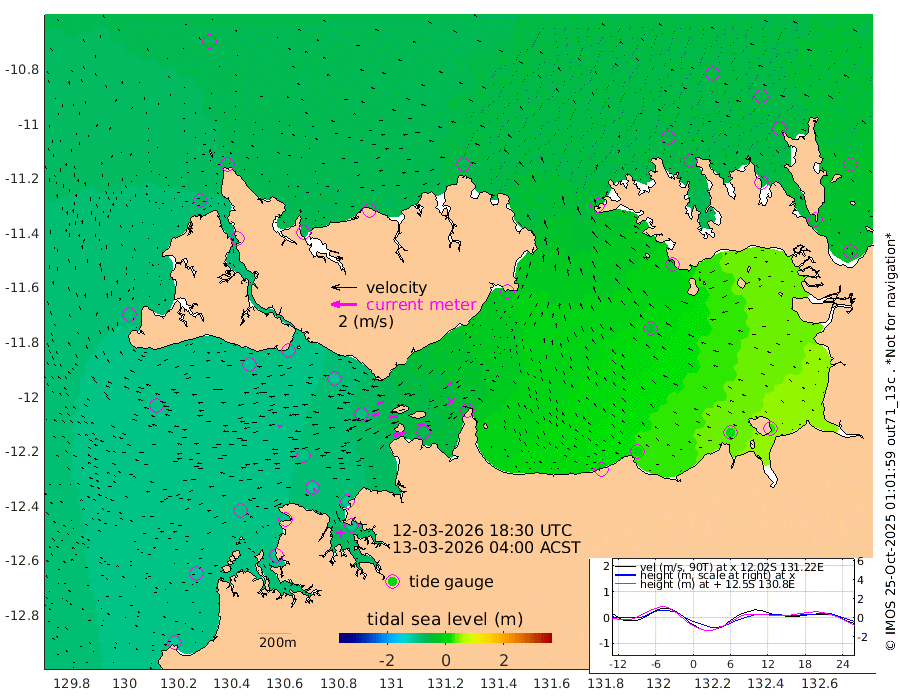 92cm/s -103T +4cm/s rms + 6cm/s 51T. Darwin_C1 52m 46cm/s -89T +4cm/s rms + 7cm/s -161T. Darwin_CW1 22m 49cm/s -107T +4cm/s rms + 8cm/s 61T. Darwin_CW2 34m 33cm/s -121T +3cm/s rms + 9cm/s 98T. Darwin_CW3 22m 64cm/s -91T +5cm/s rms + 7cm/s 88T. Darwin_C3 56m 57cm/s -116T +2cm/s rms + 9cm/s -126T. Darwin_CTbW 22m 27cm/s -95T +1cm/s rms + 1cm/s -47T. DARBGF 30m 21cm/s -70T +4cm/s rms + 3cm/s 80T. NRSDAR 19m -63cm Goodrich Bank -101cm Point Jenny -104cm Native Point -91cm Fish Reef -108cm Tapa Bay -84cm Point Fawcett (Offshore) -103cm Burge Point -105cm Munkunuwa -94cm Beagle A -102cm Parsons Bank -100cm Fenton Patches -98cm Hancox Shoal Area -102cm Nightcliff -105cm Darwin -109cm Charles Point Patches -57cm Glyde Point -12cm Chambers Bay 3cm Point Stuart -34cm Cape Hotham -25cm Christine Reef 8cm West Alligator Head 27cm East Field Island -20cm Two Hills Bay -25cm Camp Point -103cm Medina Inlet South -86cm South Barlow Point -78cm St. Asaph Bay -64cm Cape Van Dieman -66cm Snake Bay -60cm Cache Point -57cm Point Jahleel (Off) -48cm Cape Don -51cm Port Essington -55cm Smith Point - West -51cm NW Peacock Island -48cm North Of Jones Shoal -16cm Peacock Island -38cm Point David -52cm D'urville Point -34cm Copeland Island -37cm One Tree Point
