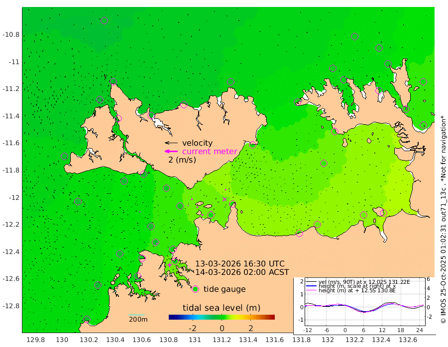 23cm/s 78T +4cm/s rms + 6cm/s 51T. Darwin_C1 52m 4cm/s 5T +4cm/s rms + 7cm/s -161T. Darwin_CW1 22m 9cm/s -106T +4cm/s rms + 8cm/s 61T. Darwin_CW2 34m 15cm/s 42T +3cm/s rms + 9cm/s 98T. Darwin_CW3 22m 19cm/s -93T +5cm/s rms + 7cm/s 88T. Darwin_C3 56m 20cm/s 63T +2cm/s rms + 9cm/s -126T. Darwin_CTbW 22m 10cm/s -93T +1cm/s rms + 1cm/s -47T. DARBGF 30m 11cm/s -54T +4cm/s rms + 3cm/s 80T. NRSDAR 19m -32cm Goodrich Bank -24cm Point Jenny -25cm Native Point -24cm Fish Reef -20cm Tapa Bay -30cm Point Fawcett (Offshore) -28cm Burge Point -33cm Munkunuwa -31cm Beagle A -16cm Parsons Bank -24cm Fenton Patches -7cm Hancox Shoal Area -6cm Nightcliff -16cm Darwin -24cm Charles Point Patches 6cm Glyde Point 33cm Chambers Bay 39cm Point Stuart 19cm Cape Hotham 23cm Christine Reef 43cm West Alligator Head 49cm East Field Island 27cm Two Hills Bay 19cm Camp Point -26cm Medina Inlet South -34cm South Barlow Point -36cm St. Asaph Bay -30cm Cape Van Dieman -25cm Snake Bay -26cm Cache Point -17cm Point Jahleel (Off) 1cm Cape Don -9cm Port Essington -8cm Smith Point - West -3cm NW Peacock Island -9cm North Of Jones Shoal -1cm Peacock Island 23cm Point David -1cm D'urville Point 26cm Copeland Island 18cm One Tree Point
