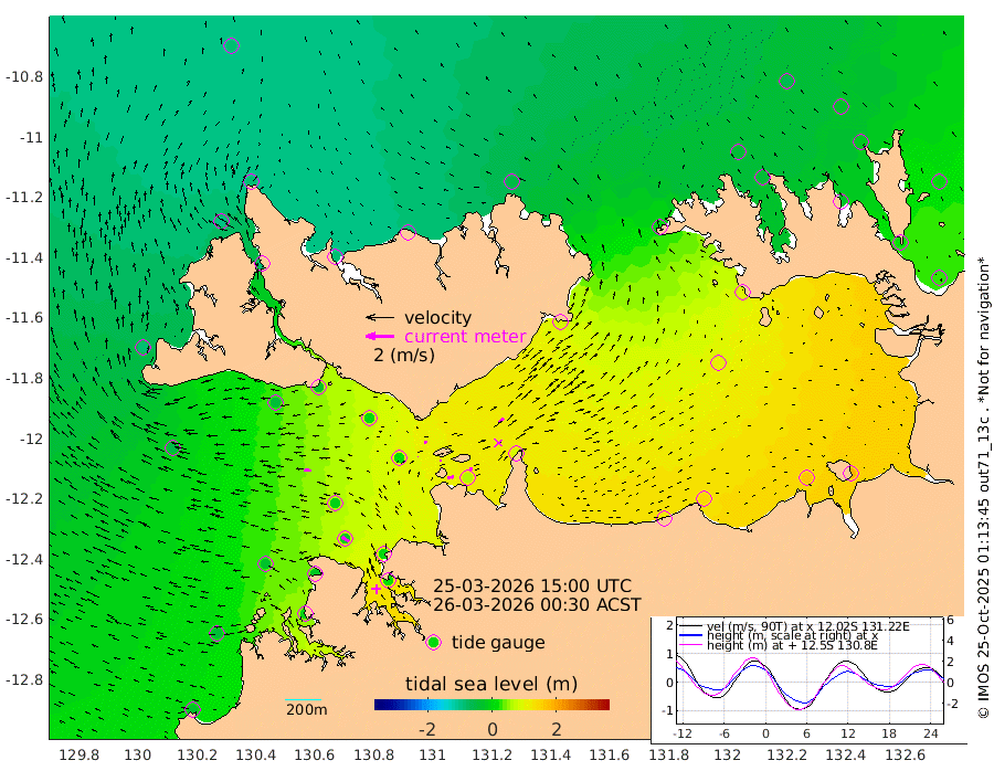 42cm/s 80T +4cm/s rms + 6cm/s 51T. Darwin_C1 52m 22cm/s 85T +4cm/s rms + 7cm/s -161T. Darwin_CW1 22m 2cm/s -30T +4cm/s rms + 8cm/s 61T. Darwin_CW2 34m 41cm/s 41T +3cm/s rms + 9cm/s 98T. Darwin_CW3 22m 12cm/s 99T +5cm/s rms + 7cm/s 88T. Darwin_C3 56m 22cm/s 62T +2cm/s rms + 9cm/s -126T. Darwin_CTbW 22m 49cm/s -85T +1cm/s rms + 1cm/s -47T. DARBGF 30m 58cm/s -54T +4cm/s rms + 3cm/s 80T. NRSDAR 19m -88cm Goodrich Bank -31cm Point Jenny -34cm Native Point -25cm Fish Reef -19cm Tapa Bay -85cm Point Fawcett (Offshore) -7cm Burge Point -37cm Munkunuwa -48cm Beagle A 10cm Parsons Bank -7cm Fenton Patches 22cm Hancox Shoal Area 6cm Nightcliff 15cm Darwin -15cm Charles Point Patches 61cm Glyde Point 121cm Chambers Bay 145cm Point Stuart 80cm Cape Hotham 107cm Christine Reef 164cm West Alligator Head 188cm East Field Island 95cm Two Hills Bay 81cm Camp Point -27cm Medina Inlet South -87cm South Barlow Point -99cm St. Asaph Bay -90cm Cape Van Dieman -85cm Snake Bay -79cm Cache Point -55cm Point Jahleel (Off) -2cm Cape Don -39cm Port Essington -39cm Smith Point - West -30cm NW Peacock Island -57cm North Of Jones Shoal -16cm Peacock Island 16cm Point David -26cm D'urville Point 24cm Copeland Island 5cm One Tree Point
