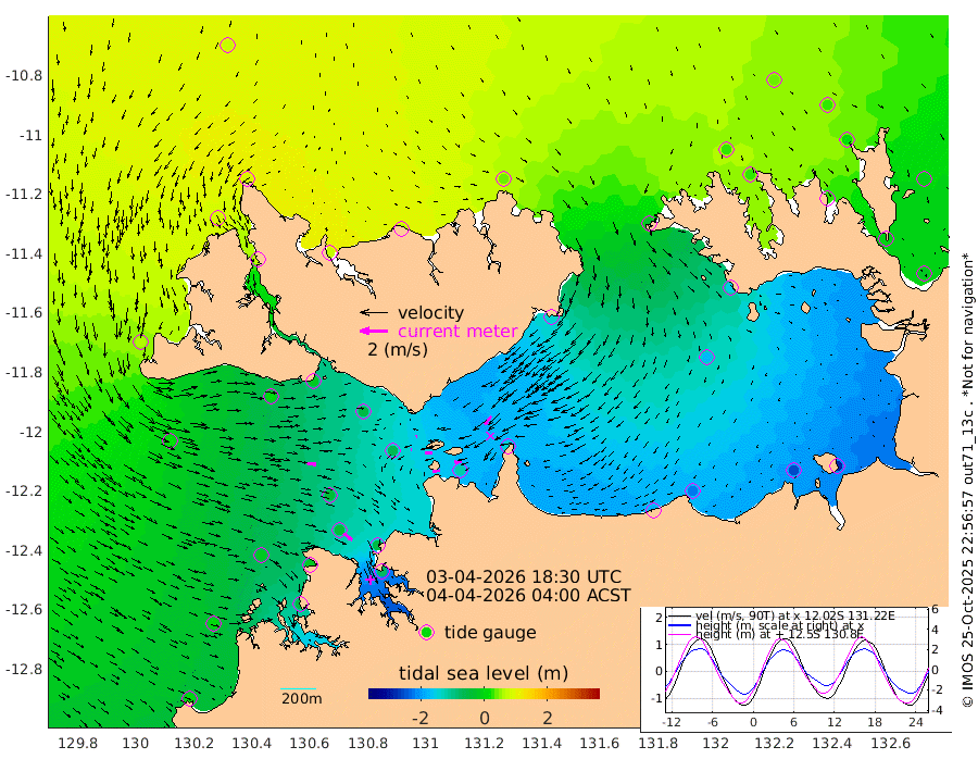 53cm/s -102T +4cm/s rms + 6cm/s 51T. Darwin_C1 52m 48cm/s -90T +4cm/s rms + 7cm/s -161T. Darwin_CW1 22m 6cm/s -98T +4cm/s rms + 8cm/s 61T. Darwin_CW2 34m 75cm/s -142T +3cm/s rms + 9cm/s 98T. Darwin_CW3 22m 52cm/s -88T +5cm/s rms + 7cm/s 88T. Darwin_C3 56m 7cm/s -106T +2cm/s rms + 9cm/s -126T. Darwin_CTbW 22m 69cm/s 97T +1cm/s rms + 1cm/s -47T. DARBGF 30m 78cm/s 128T +4cm/s rms + 3cm/s 80T. NRSDAR 19m 76cm Goodrich Bank 3cm Point Jenny 7cm Native Point -17cm Fish Reef -13cm Tapa Bay 63cm Point Fawcett (Offshore) -47cm Burge Point 5cm Munkunuwa 18cm Beagle A -50cm Parsons Bank -37cm Fenton Patches -63cm Hancox Shoal Area -48cm Nightcliff -77cm Darwin -41cm Charles Point Patches -120cm Glyde Point -187cm Chambers Bay -221cm Point Stuart -139cm Cape Hotham -172cm Christine Reef -250cm West Alligator Head -288cm East Field Island -154cm Two Hills Bay -141cm Camp Point -20cm Medina Inlet South 70cm South Barlow Point 83cm St. Asaph Bay 82cm Cape Van Dieman 76cm Snake Bay 66cm Cache Point 39cm Point Jahleel (Off) -24cm Cape Don 28cm Port Essington 34cm Smith Point - West 27cm NW Peacock Island 44cm North Of Jones Shoal 13cm Peacock Island -7cm Point David 27cm D'urville Point -14cm Copeland Island -8cm One Tree Point