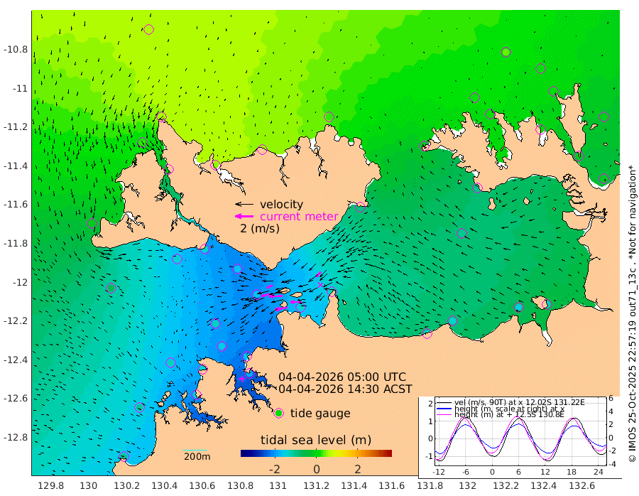 144cm/s -101T +4cm/s rms + 6cm/s 51T. Darwin_C1 52m 120cm/s -91T +4cm/s rms + 7cm/s -161T. Darwin_CW1 22m 83cm/s -106T +4cm/s rms + 8cm/s 61T. Darwin_CW2 34m 76cm/s -134T +3cm/s rms + 9cm/s 98T. Darwin_CW3 22m 147cm/s -91T +5cm/s rms + 7cm/s 88T. Darwin_C3 56m 71cm/s -116T +2cm/s rms + 9cm/s -126T. Darwin_CTbW 22m 7cm/s -173T +1cm/s rms + 1cm/s -47T. DARBGF 30m 13cm/s 180T +4cm/s rms + 3cm/s 80T. NRSDAR 19m 65cm Goodrich Bank -104cm Point Jenny -102cm Native Point -125cm Fish Reef -138cm Tapa Bay -13cm Point Fawcett (Offshore) -149cm Burge Point -137cm Munkunuwa -66cm Beagle A -165cm Parsons Bank -135cm Fenton Patches -164cm Hancox Shoal Area -159cm Nightcliff -188cm Darwin -154cm Charles Point Patches -142cm Glyde Point -132cm Chambers Bay -137cm Point Stuart -127cm Cape Hotham -109cm Christine Reef -152cm West Alligator Head -144cm East Field Island -108cm Two Hills Bay -98cm Camp Point -139cm Medina Inlet South 0cm South Barlow Point 30cm St. Asaph Bay 63cm Cape Van Dieman 55cm Snake Bay 59cm Cache Point 32cm Point Jahleel (Off) -28cm Cape Don 16cm Port Essington 19cm Smith Point - West 22cm NW Peacock Island 41cm North Of Jones Shoal 12cm Peacock Island -13cm Point David 14cm D'urville Point -18cm Copeland Island -8cm One Tree Point