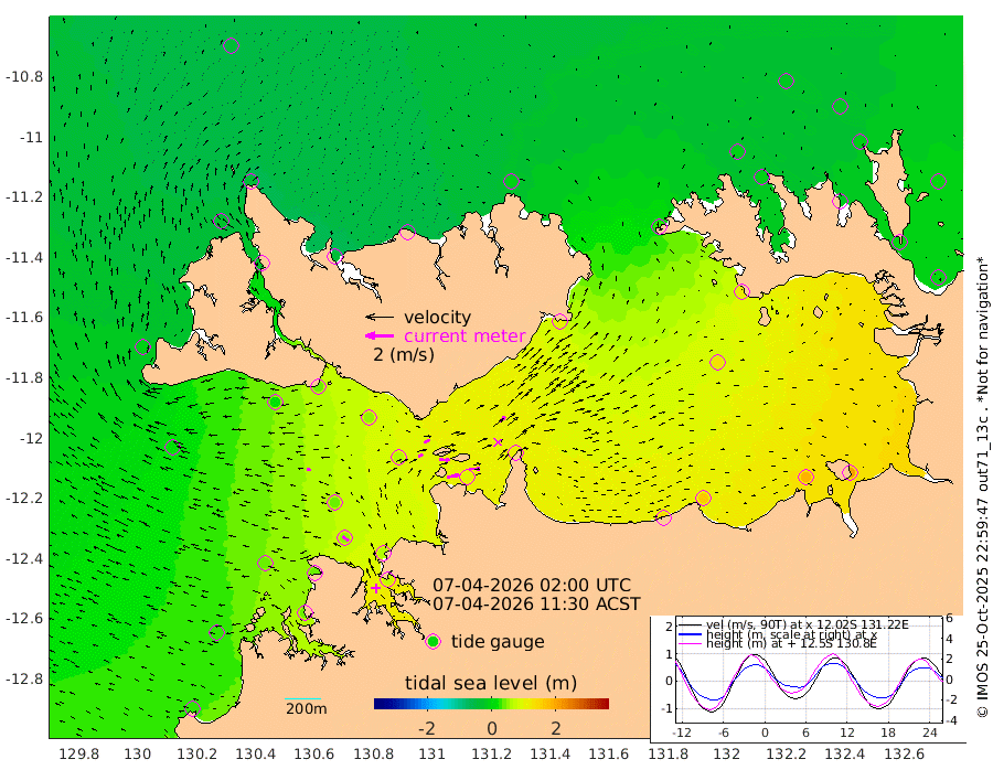 86cm/s 80T +4cm/s rms + 6cm/s 51T. Darwin_C1 52m 80cm/s 91T +4cm/s rms + 7cm/s -161T. Darwin_CW1 22m 33cm/s 69T +4cm/s rms + 8cm/s 61T. Darwin_CW2 34m 55cm/s 48T +3cm/s rms + 9cm/s 98T. Darwin_CW3 22m 72cm/s 91T +5cm/s rms + 7cm/s 88T. Darwin_C3 56m 44cm/s 66T +2cm/s rms + 9cm/s -126T. Darwin_CTbW 22m 33cm/s -79T +1cm/s rms + 1cm/s -47T. DARBGF 30m 51cm/s -52T +4cm/s rms + 3cm/s 80T. NRSDAR 19m -34cm Goodrich Bank 29cm Point Jenny 25cm Native Point 39cm Fish Reef 42cm Tapa Bay -5cm Point Fawcett (Offshore) 44cm Burge Point 22cm Munkunuwa 12cm Beagle A 47cm Parsons Bank 42cm Fenton Patches 64cm Hancox Shoal Area 60cm Nightcliff 70cm Darwin 51cm Charles Point Patches 95cm Glyde Point 147cm Chambers Bay 164cm Point Stuart 107cm Cape Hotham 131cm Christine Reef 187cm West Alligator Head 208cm East Field Island 121cm Two Hills Bay 104cm Camp Point 40cm Medina Inlet South -27cm South Barlow Point -28cm St. Asaph Bay -38cm Cape Van Dieman -36cm Snake Bay -25cm Cache Point -9cm Point Jahleel (Off) 29cm Cape Don -11cm Port Essington -11cm Smith Point - West -12cm NW Peacock Island -15cm North Of Jones Shoal -5cm Peacock Island 0cm Point David -13cm D'urville Point 3cm Copeland Island 4cm One Tree Point