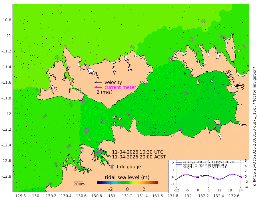24cm/s -102T +4cm/s rms + 6cm/s 51T. Darwin_C1 52m 5cm/s -85T +4cm/s rms + 7cm/s -161T. Darwin_CW1 22m 6cm/s -121T +4cm/s rms + 8cm/s 61T. Darwin_CW2 34m 13cm/s -133T +3cm/s rms + 9cm/s 98T. Darwin_CW3 22m 4cm/s 91T +5cm/s rms + 7cm/s 88T. Darwin_C3 56m 21cm/s -114T +2cm/s rms + 9cm/s -126T. Darwin_CTbW 22m 4cm/s -84T +1cm/s rms + 1cm/s -47T. DARBGF 30m 5cm/s -66T +4cm/s rms + 3cm/s 80T. NRSDAR 19m 39cm Goodrich Bank 8cm Point Jenny 11cm Native Point 8cm Fish Reef 12cm Tapa Bay 22cm Point Fawcett (Offshore) 12cm Burge Point 13cm Munkunuwa 8cm Beagle A 13cm Parsons Bank 4cm Fenton Patches 7cm Hancox Shoal Area -7cm Nightcliff 16cm Darwin 25cm Charles Point Patches 5cm Glyde Point -18cm Chambers Bay -14cm Point Stuart -2cm Cape Hotham -14cm Christine Reef -20cm West Alligator Head -24cm East Field Island -5cm Two Hills Bay 3cm Camp Point 14cm Medina Inlet South 29cm South Barlow Point 29cm St. Asaph Bay 38cm Cape Van Dieman 40cm Snake Bay 34cm Cache Point 28cm Point Jahleel (Off) 18cm Cape Don 33cm Port Essington 26cm Smith Point - West 30cm NW Peacock Island 27cm North Of Jones Shoal 9cm Peacock Island 30cm Point David 28cm D'urville Point 26cm Copeland Island 28cm One Tree Point