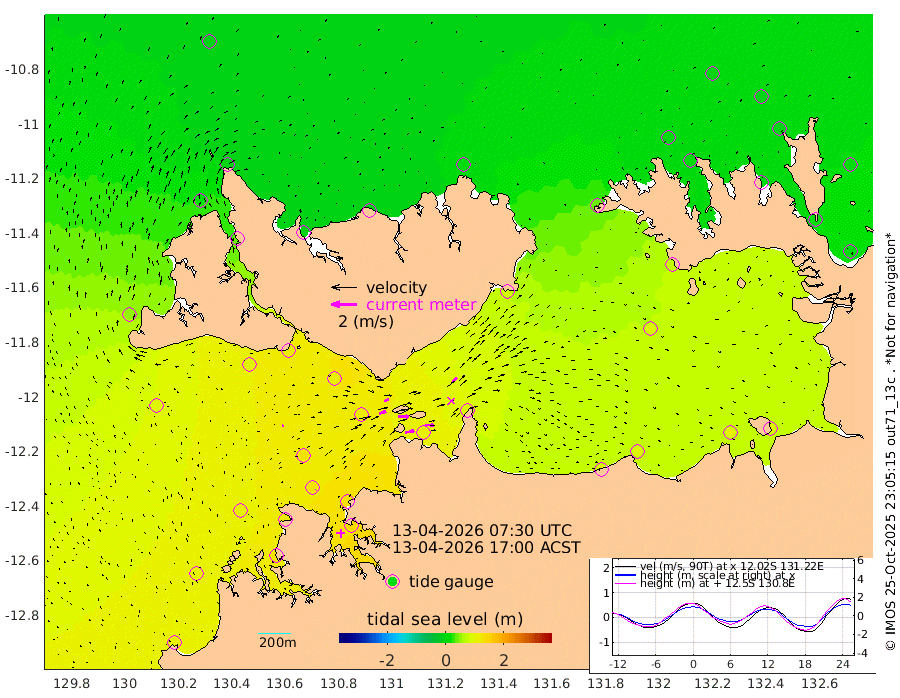 70cm/s 78T +4cm/s rms + 6cm/s 51T. Darwin_C1 52m 71cm/s 93T +4cm/s rms + 7cm/s -161T. Darwin_CW1 22m 55cm/s 72T +4cm/s rms + 8cm/s 61T. Darwin_CW2 34m 49cm/s 43T +3cm/s rms + 9cm/s 98T. Darwin_CW3 22m 87cm/s 89T +5cm/s rms + 7cm/s 88T. Darwin_C3 56m 39cm/s 67T +2cm/s rms + 9cm/s -126T. Darwin_CTbW 22m 8cm/s 55T +1cm/s rms + 1cm/s -47T. DARBGF 30m 4cm/s 55T +4cm/s rms + 3cm/s 80T. NRSDAR 19m -4cm Goodrich Bank 103cm Point Jenny 102cm Native Point 111cm Fish Reef 115cm Tapa Bay 48cm Point Fawcett (Offshore) 130cm Burge Point 100cm Munkunuwa 92cm Beagle A 112cm Parsons Bank 126cm Fenton Patches 117cm Hancox Shoal Area 131cm Nightcliff 140cm Darwin 128cm Charles Point Patches 111cm Glyde Point 104cm Chambers Bay 95cm Point Stuart 92cm Cape Hotham 93cm Christine Reef 104cm West Alligator Head 108cm East Field Island 77cm Two Hills Bay 90cm Camp Point 116cm Medina Inlet South 35cm South Barlow Point 21cm St. Asaph Bay -5cm Cape Van Dieman -3cm Snake Bay -1cm Cache Point 7cm Point Jahleel (Off) 38cm Cape Don 8cm Port Essington 3cm Smith Point - West -1cm NW Peacock Island -1cm North Of Jones Shoal 0cm Peacock Island 2cm Point David 0cm D'urville Point 2cm Copeland Island 7cm One Tree Point