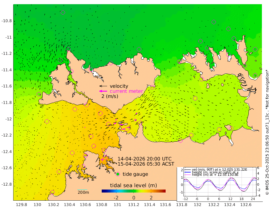 83cm/s 79T +4cm/s rms + 6cm/s 51T. Darwin_C1 52m 62cm/s 93T +4cm/s rms + 7cm/s -161T. Darwin_CW1 22m 64cm/s 72T +4cm/s rms + 8cm/s 61T. Darwin_CW2 34m 55cm/s 41T +3cm/s rms + 9cm/s 98T. Darwin_CW3 22m 95cm/s 89T +5cm/s rms + 7cm/s 88T. Darwin_C3 56m 40cm/s 66T +2cm/s rms + 9cm/s -126T. Darwin_CTbW 22m 13cm/s 68T +1cm/s rms + 1cm/s -47T. DARBGF 30m 8cm/s 88T +4cm/s rms + 3cm/s 80T. NRSDAR 19m -31cm Goodrich Bank 116cm Point Jenny 114cm Native Point 123cm Fish Reef 141cm Tapa Bay 38cm Point Fawcett (Offshore) 146cm Burge Point 121cm Munkunuwa 94cm Beagle A 145cm Parsons Bank 146cm Fenton Patches 156cm Hancox Shoal Area 165cm Nightcliff 167cm Darwin 148cm Charles Point Patches 128cm Glyde Point 119cm Chambers Bay 108cm Point Stuart 114cm Cape Hotham 101cm Christine Reef 117cm West Alligator Head 114cm East Field Island 89cm Two Hills Bay 96cm Camp Point 129cm Medina Inlet South 22cm South Barlow Point 3cm St. Asaph Bay -28cm Cape Van Dieman -25cm Snake Bay -24cm Cache Point -5cm Point Jahleel (Off) 34cm Cape Don 1cm Port Essington 2cm Smith Point - West 0cm NW Peacock Island -14cm North Of Jones Shoal -3cm Peacock Island 27cm Point David 6cm D'urville Point 32cm Copeland Island 20cm One Tree Point