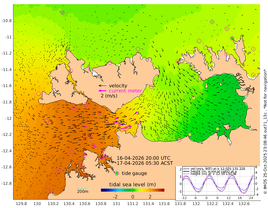 178cm/s 78T +4cm/s rms + 6cm/s 51T. Darwin_C1 52m 131cm/s 90T +4cm/s rms + 7cm/s -161T. Darwin_CW1 22m 115cm/s 74T +4cm/s rms + 8cm/s 61T. Darwin_CW2 34m 85cm/s 47T +3cm/s rms + 9cm/s 98T. Darwin_CW3 22m 164cm/s 89T +5cm/s rms + 7cm/s 88T. Darwin_C3 56m 93cm/s 65T +2cm/s rms + 9cm/s -126T. Darwin_CTbW 22m 64cm/s 86T +1cm/s rms + 1cm/s -47T. DARBGF 30m 62cm/s 114T +4cm/s rms + 3cm/s 80T. NRSDAR 19m 32cm Goodrich Bank 248cm Point Jenny 247cm Native Point 250cm Fish Reef 272cm Tapa Bay 147cm Point Fawcett (Offshore) 278cm Burge Point 257cm Munkunuwa 219cm Beagle A 270cm Parsons Bank 271cm Fenton Patches 265cm Hancox Shoal Area 283cm Nightcliff 285cm Darwin 273cm Charles Point Patches 179cm Glyde Point 103cm Chambers Bay 73cm Point Stuart 136cm Cape Hotham 98cm Christine Reef 70cm West Alligator Head 34cm East Field Island 89cm Two Hills Bay 98cm Camp Point 257cm Medina Inlet South 127cm South Barlow Point 95cm St. Asaph Bay 41cm Cape Van Dieman 43cm Snake Bay 41cm Cache Point 52cm Point Jahleel (Off) 87cm Cape Don 59cm Port Essington 65cm Smith Point - West 56cm NW Peacock Island 38cm North Of Jones Shoal 15cm Peacock Island 68cm Point David 66cm D'urville Point 70cm Copeland Island 62cm One Tree Point