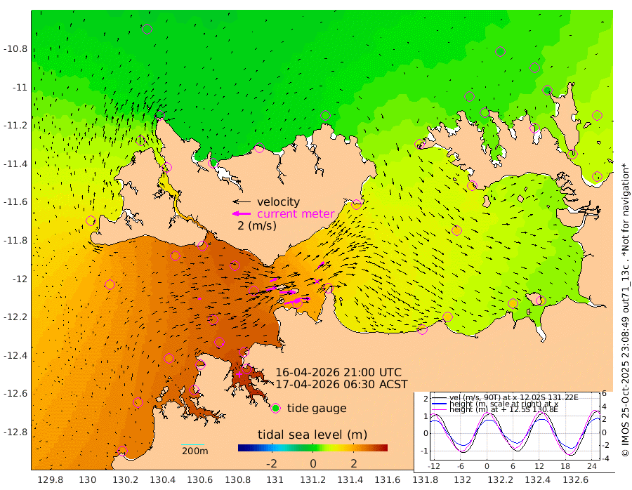178cm/s 78T +4cm/s rms + 6cm/s 51T. Darwin_C1 52m 135cm/s 92T +4cm/s rms + 7cm/s -161T. Darwin_CW1 22m 116cm/s 73T +4cm/s rms + 8cm/s 61T. Darwin_CW2 34m 102cm/s 44T +3cm/s rms + 9cm/s 98T. Darwin_CW3 22m 179cm/s 89T +5cm/s rms + 7cm/s 88T. Darwin_C3 56m 86cm/s 66T +2cm/s rms + 9cm/s -126T. Darwin_CTbW 22m 31cm/s 75T +1cm/s rms + 1cm/s -47T. DARBGF 30m 22cm/s 98T +4cm/s rms + 3cm/s 80T. NRSDAR 19m -9cm Goodrich Bank 220cm Point Jenny 218cm Native Point 228cm Fish Reef 254cm Tapa Bay 102cm Point Fawcett (Offshore) 267cm Burge Point 230cm Munkunuwa 185cm Beagle A 262cm Parsons Bank 259cm Fenton Patches 269cm Hancox Shoal Area 281cm Nightcliff 291cm Darwin 265cm Charles Point Patches 210cm Glyde Point 171cm Chambers Bay 153cm Point Stuart 178cm Cape Hotham 159cm Christine Reef 163cm West Alligator Head 147cm East Field Island 139cm Two Hills Bay 146cm Camp Point 239cm Medina Inlet South 81cm South Barlow Point 47cm St. Asaph Bay -4cm Cape Van Dieman 1cm Snake Bay 1cm Cache Point 24cm Point Jahleel (Off) 80cm Cape Don 33cm Port Essington 36cm Smith Point - West 30cm NW Peacock Island 9cm North Of Jones Shoal 5cm Peacock Island 56cm Point David 39cm D'urville Point 60cm Copeland Island 50cm One Tree Point