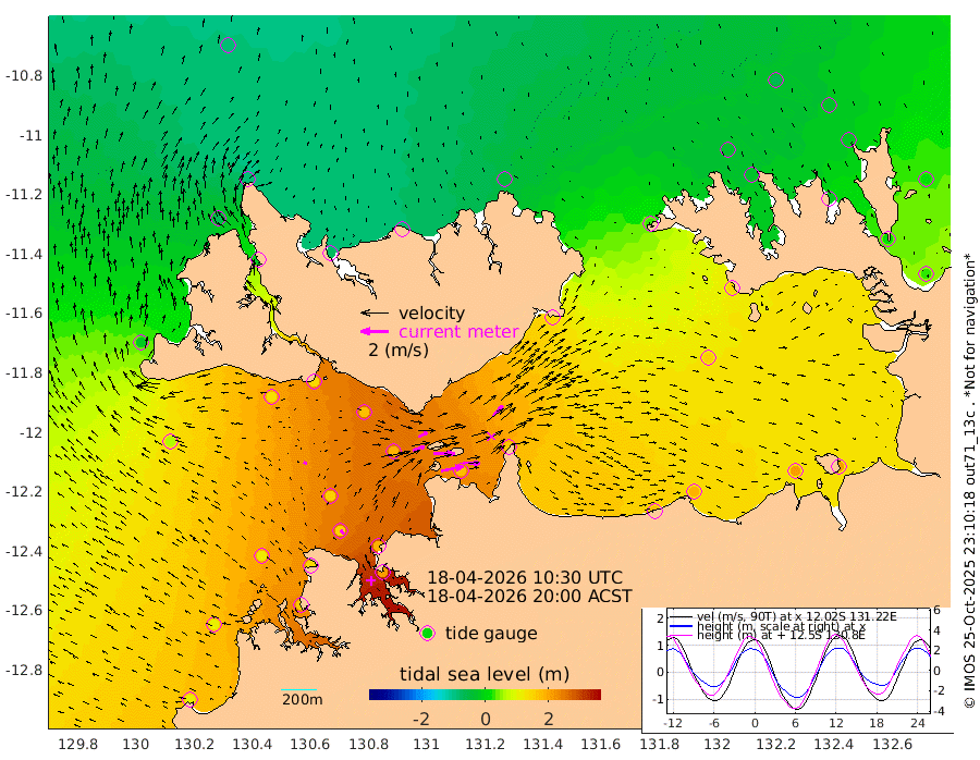 159cm/s 79T +4cm/s rms + 6cm/s 51T. Darwin_C1 52m 123cm/s 93T +4cm/s rms + 7cm/s -161T. Darwin_CW1 22m 88cm/s 71T +4cm/s rms + 8cm/s 61T. Darwin_CW2 34m 107cm/s 44T +3cm/s rms + 9cm/s 98T. Darwin_CW3 22m 152cm/s 90T +5cm/s rms + 7cm/s 88T. Darwin_C3 56m 72cm/s 65T +2cm/s rms + 9cm/s -126T. Darwin_CTbW 22m 25cm/s -67T +1cm/s rms + 1cm/s -47T. DARBGF 30m 37cm/s -42T +4cm/s rms + 3cm/s 80T. NRSDAR 19m -86cm Goodrich Bank 103cm Point Jenny 102cm Native Point 119cm Fish Reef 140cm Tapa Bay -17cm Point Fawcett (Offshore) 169cm Burge Point 130cm Munkunuwa 67cm Beagle A 179cm Parsons Bank 155cm Fenton Patches 182cm Hancox Shoal Area 183cm Nightcliff 207cm Darwin 157cm Charles Point Patches 174cm Glyde Point 174cm Chambers Bay 186cm Point Stuart 161cm Cape Hotham 157cm Christine Reef 206cm West Alligator Head 212cm East Field Island 141cm Two Hills Bay 142cm Camp Point 138cm Medina Inlet South -19cm South Barlow Point -57cm St. Asaph Bay -85cm Cape Van Dieman -71cm Snake Bay -81cm Cache Point -44cm Point Jahleel (Off) 31cm Cape Don -29cm Port Essington -33cm Smith Point - West -29cm NW Peacock Island -58cm North Of Jones Shoal -17cm Peacock Island 22cm Point David -22cm D'urville Point 29cm Copeland Island 13cm One Tree Point