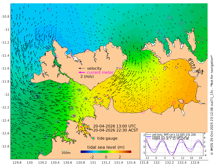 30cm/s 83T +4cm/s rms + 6cm/s 51T. Darwin_C1 52m 27cm/s 89T +4cm/s rms + 7cm/s -161T. Darwin_CW1 22m 7cm/s -67T +4cm/s rms + 8cm/s 61T. Darwin_CW2 34m 49cm/s 42T +3cm/s rms + 9cm/s 98T. Darwin_CW3 22m 17cm/s 99T +5cm/s rms + 7cm/s 88T. Darwin_C3 56m 6cm/s 62T +2cm/s rms + 9cm/s -126T. Darwin_CTbW 22m 83cm/s -85T +1cm/s rms + 1cm/s -47T. DARBGF 30m 97cm/s -54T +4cm/s rms + 3cm/s 80T. NRSDAR 19m -144cm Goodrich Bank -87cm Point Jenny -90cm Native Point -79cm Fish Reef -66cm Tapa Bay -154cm Point Fawcett (Offshore) -49cm Burge Point -79cm Munkunuwa -112cm Beagle A -26cm Parsons Bank -52cm Fenton Patches -6cm Hancox Shoal Area -25cm Nightcliff -13cm Darwin -57cm Charles Point Patches 52cm Glyde Point 142cm Chambers Bay 173cm Point Stuart 80cm Cape Hotham 123cm Christine Reef 202cm West Alligator Head 241cm East Field Island 100cm Two Hills Bay 90cm Camp Point -71cm Medina Inlet South -150cm South Barlow Point -162cm St. Asaph Bay -149cm Cape Van Dieman -142cm Snake Bay -139cm Cache Point -104cm Point Jahleel (Off) -39cm Cape Don -90cm Port Essington -93cm Smith Point - West -82cm NW Peacock Island -108cm North Of Jones Shoal -34cm Peacock Island -25cm Point David -80cm D'urville Point -15cm Copeland Island -37cm One Tree Point