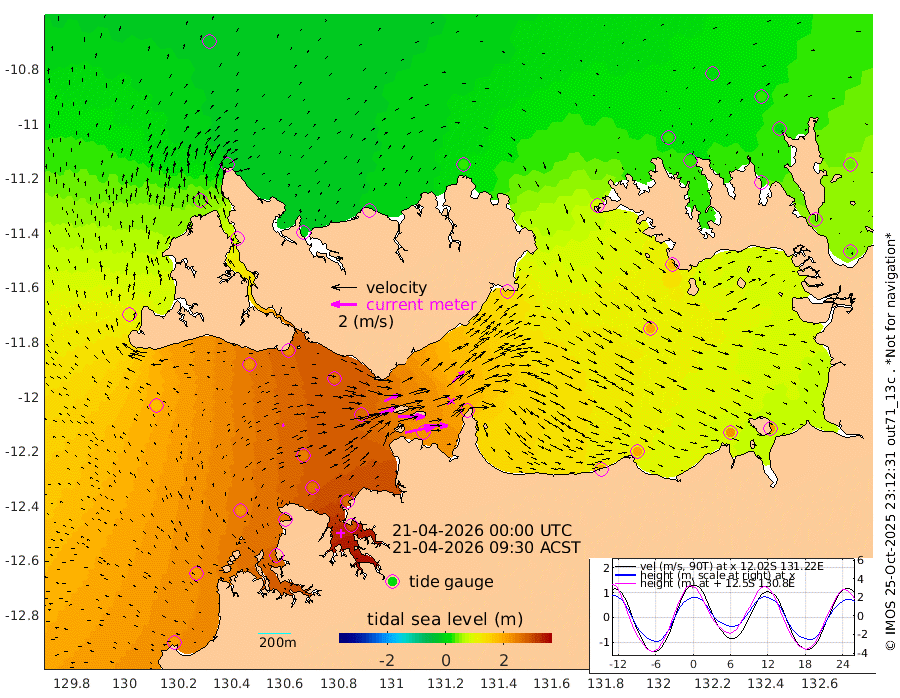 236cm/s 78T +4cm/s rms + 6cm/s 51T. Darwin_C1 52m 180cm/s 93T +4cm/s rms + 7cm/s -161T. Darwin_CW1 22m 128cm/s 72T +4cm/s rms + 8cm/s 61T. Darwin_CW2 34m 129cm/s 46T +3cm/s rms + 9cm/s 98T. Darwin_CW3 22m 208cm/s 89T +5cm/s rms + 7cm/s 88T. Darwin_C3 56m 119cm/s 66T +2cm/s rms + 9cm/s -126T. Darwin_CTbW 22m 18cm/s 54T +1cm/s rms + 1cm/s -47T. DARBGF 30m 12cm/s 21T +4cm/s rms + 3cm/s 80T. NRSDAR 19m -13cm Goodrich Bank 211cm Point Jenny 207cm Native Point 220cm Fish Reef 239cm Tapa Bay 96cm Point Fawcett (Offshore) 261cm Burge Point 223cm Munkunuwa 171cm Beagle A 257cm Parsons Bank 244cm Fenton Patches 259cm Hancox Shoal Area 270cm Nightcliff 283cm Darwin 249cm Charles Point Patches 219cm Glyde Point 198cm Chambers Bay 195cm Point Stuart 195cm Cape Hotham 193cm Christine Reef 214cm West Alligator Head 203cm East Field Island 170cm Two Hills Bay 161cm Camp Point 233cm Medina Inlet South 72cm South Barlow Point 40cm St. Asaph Bay -10cm Cape Van Dieman -5cm Snake Bay 0cm Cache Point 24cm Point Jahleel (Off) 88cm Cape Don 28cm Port Essington 31cm Smith Point - West 24cm NW Peacock Island 8cm North Of Jones Shoal 4cm Peacock Island 41cm Point David 30cm D'urville Point 44cm Copeland Island 42cm One Tree Point