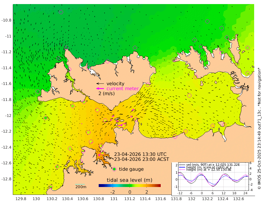 126cm/s 78T +4cm/s rms + 6cm/s 51T. Darwin_C1 52m 72cm/s 91T +4cm/s rms + 7cm/s -161T. Darwin_CW1 22m 41cm/s 72T +4cm/s rms + 8cm/s 61T. Darwin_CW2 34m 77cm/s 43T +3cm/s rms + 9cm/s 98T. Darwin_CW3 22m 69cm/s 90T +5cm/s rms + 7cm/s 88T. Darwin_C3 56m 65cm/s 65T +2cm/s rms + 9cm/s -126T. Darwin_CTbW 22m 13cm/s -74T +1cm/s rms + 1cm/s -47T. DARBGF 30m 20cm/s -42T +4cm/s rms + 3cm/s 80T. NRSDAR 19m -46cm Goodrich Bank 51cm Point Jenny 48cm Native Point 63cm Fish Reef 69cm Tapa Bay -8cm Point Fawcett (Offshore) 79cm Burge Point 56cm Munkunuwa 26cm Beagle A 100cm Parsons Bank 71cm Fenton Patches 101cm Hancox Shoal Area 87cm Nightcliff 107cm Darwin 82cm Charles Point Patches 103cm Glyde Point 114cm Chambers Bay 129cm Point Stuart 105cm Cape Hotham 101cm Christine Reef 140cm West Alligator Head 140cm East Field Island 104cm Two Hills Bay 87cm Camp Point 65cm Medina Inlet South -14cm South Barlow Point -36cm St. Asaph Bay -43cm Cape Van Dieman -35cm Snake Bay -34cm Cache Point -12cm Point Jahleel (Off) 41cm Cape Don 12cm Port Essington 12cm Smith Point - West 17cm NW Peacock Island -10cm North Of Jones Shoal 1cm Peacock Island 62cm Point David 25cm D'urville Point 68cm Copeland Island 53cm One Tree Point