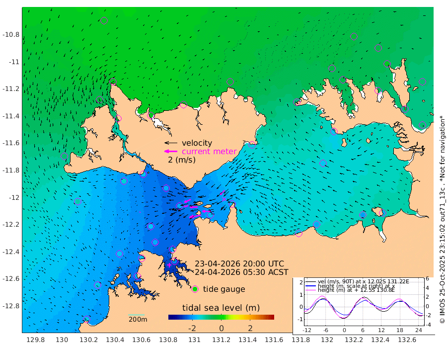 188cm/s -101T +4cm/s rms + 6cm/s 51T. Darwin_C1 52m 134cm/s -91T +4cm/s rms + 7cm/s -161T. Darwin_CW1 22m 67cm/s -105T +4cm/s rms + 8cm/s 61T. Darwin_CW2 34m 99cm/s -135T +3cm/s rms + 9cm/s 98T. Darwin_CW3 22m 117cm/s -90T +5cm/s rms + 7cm/s 88T. Darwin_C3 56m 110cm/s -115T +2cm/s rms + 9cm/s -126T. Darwin_CTbW 22m 7cm/s -149T +1cm/s rms + 1cm/s -47T. DARBGF 30m 10cm/s 170T +4cm/s rms + 3cm/s 80T. NRSDAR 19m -12cm Goodrich Bank -151cm Point Jenny -147cm Native Point -159cm Fish Reef -168cm Tapa Bay -81cm Point Fawcett (Offshore) -183cm Burge Point -144cm Munkunuwa -121cm Beagle A -183cm Parsons Bank -167cm Fenton Patches -184cm Hancox Shoal Area -184cm Nightcliff -204cm Darwin -184cm Charles Point Patches -177cm Glyde Point -173cm Chambers Bay -181cm Point Stuart -165cm Cape Hotham -164cm Christine Reef -194cm West Alligator Head -191cm East Field Island -158cm Two Hills Bay -147cm Camp Point -164cm Medina Inlet South -60cm South Barlow Point -37cm St. Asaph Bay -14cm Cape Van Dieman -21cm Snake Bay -26cm Cache Point -42cm Point Jahleel (Off) -97cm Cape Don -56cm Port Essington -54cm Smith Point - West -54cm NW Peacock Island -38cm North Of Jones Shoal -15cm Peacock Island -80cm Point David -59cm D'urville Point -82cm Copeland Island -80cm One Tree Point