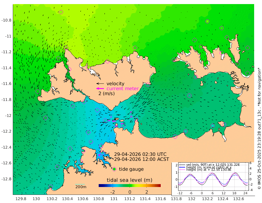 83cm/s -101T +4cm/s rms + 6cm/s 51T. Darwin_C1 52m 76cm/s -91T +4cm/s rms + 7cm/s -161T. Darwin_CW1 22m 53cm/s -106T +4cm/s rms + 8cm/s 61T. Darwin_CW2 34m 54cm/s -136T +3cm/s rms + 9cm/s 98T. Darwin_CW3 22m 93cm/s -91T +5cm/s rms + 7cm/s 88T. Darwin_C3 56m 37cm/s -116T +2cm/s rms + 9cm/s -126T. Darwin_CTbW 22m 8cm/s 139T +1cm/s rms + 1cm/s -47T. DARBGF 30m 12cm/s 153T +4cm/s rms + 3cm/s 80T. NRSDAR 19m 56cm Goodrich Bank -87cm Point Jenny -85cm Native Point -100cm Fish Reef -112cm Tapa Bay -10cm Point Fawcett (Offshore) -126cm Burge Point -106cm Munkunuwa -55cm Beagle A -128cm Parsons Bank -110cm Fenton Patches -129cm Hancox Shoal Area -126cm Nightcliff -146cm Darwin -120cm Charles Point Patches -118cm Glyde Point -117cm Chambers Bay -122cm Point Stuart -109cm Cape Hotham -97cm Christine Reef -135cm West Alligator Head -133cm East Field Island -91cm Two Hills Bay -91cm Camp Point -107cm Medina Inlet South 8cm South Barlow Point 27cm St. Asaph Bay 53cm Cape Van Dieman 51cm Snake Bay 49cm Cache Point 29cm Point Jahleel (Off) -20cm Cape Don 18cm Port Essington 24cm Smith Point - West 25cm NW Peacock Island 39cm North Of Jones Shoal 12cm Peacock Island -8cm Point David 20cm D'urville Point -12cm Copeland Island -2cm One Tree Point