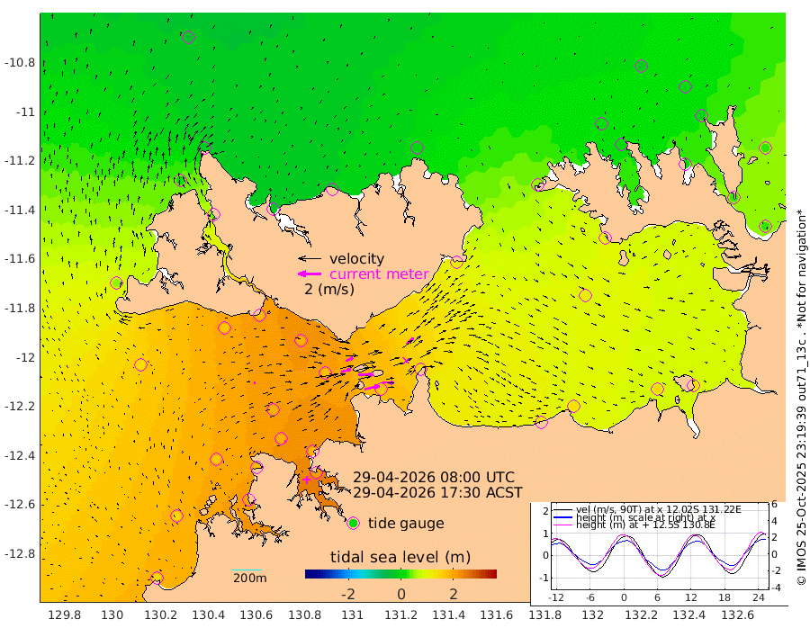 132cm/s 78T +4cm/s rms + 6cm/s 51T. Darwin_C1 52m 102cm/s 93T +4cm/s rms + 7cm/s -161T. Darwin_CW1 22m 85cm/s 72T +4cm/s rms + 8cm/s 61T. Darwin_CW2 34m 77cm/s 45T +3cm/s rms + 9cm/s 98T. Darwin_CW3 22m 131cm/s 89T +5cm/s rms + 7cm/s 88T. Darwin_C3 56m 66cm/s 65T +2cm/s rms + 9cm/s -126T. Darwin_CTbW 22m 15cm/s 65T +1cm/s rms + 1cm/s -47T. DARBGF 30m 9cm/s 77T +4cm/s rms + 3cm/s 80T. NRSDAR 19m -24cm Goodrich Bank 146cm Point Jenny 146cm Native Point 166cm Fish Reef 170cm Tapa Bay 55cm Point Fawcett (Offshore) 195cm Burge Point 163cm Munkunuwa 125cm Beagle A 187cm Parsons Bank 185cm Fenton Patches 180cm Hancox Shoal Area 185cm Nightcliff 213cm Darwin 185cm Charles Point Patches 161cm Glyde Point 127cm Chambers Bay 133cm Point Stuart 136cm Cape Hotham 113cm Christine Reef 142cm West Alligator Head 136cm East Field Island 111cm Two Hills Bay 113cm Camp Point 171cm Medina Inlet South 43cm South Barlow Point 12cm St. Asaph Bay -21cm Cape Van Dieman -15cm Snake Bay -18cm Cache Point 1cm Point Jahleel (Off) 52cm Cape Don 12cm Port Essington 7cm Smith Point - West 4cm NW Peacock Island -16cm North Of Jones Shoal -3cm Peacock Island 27cm Point David 10cm D'urville Point 29cm Copeland Island 24cm One Tree Point
