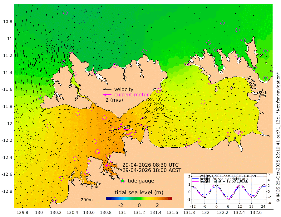 113cm/s 78T +4cm/s rms + 6cm/s 51T. Darwin_C1 52m 93cm/s 93T +4cm/s rms + 7cm/s -161T. Darwin_CW1 22m 73cm/s 71T +4cm/s rms + 8cm/s 61T. Darwin_CW2 34m 72cm/s 45T +3cm/s rms + 9cm/s 98T. Darwin_CW3 22m 117cm/s 89T +5cm/s rms + 7cm/s 88T. Darwin_C3 56m 55cm/s 65T +2cm/s rms + 9cm/s -126T. Darwin_CTbW 22m 8cm/s -31T +1cm/s rms + 1cm/s -47T. DARBGF 30m 15cm/s -35T +4cm/s rms + 3cm/s 80T. NRSDAR 19m -43cm Goodrich Bank 115cm Point Jenny 115cm Native Point 134cm Fish Reef 140cm Tapa Bay 24cm Point Fawcett (Offshore) 167cm Burge Point 133cm Munkunuwa 93cm Beagle A 161cm Parsons Bank 156cm Fenton Patches 157cm Hancox Shoal Area 158cm Nightcliff 187cm Darwin 157cm Charles Point Patches 152cm Glyde Point 135cm Chambers Bay 146cm Point Stuart 133cm Cape Hotham 120cm Christine Reef 159cm West Alligator Head 161cm East Field Island 113cm Two Hills Bay 116cm Camp Point 141cm Medina Inlet South 14cm South Barlow Point -15cm St. Asaph Bay -42cm Cape Van Dieman -36cm Snake Bay -38cm Cache Point -16cm Point Jahleel (Off) 38cm Cape Don -6cm Port Essington -12cm Smith Point - West -12cm NW Peacock Island -34cm North Of Jones Shoal -10cm Peacock Island 15cm Point David -8cm D'urville Point 18cm Copeland Island 11cm One Tree Point