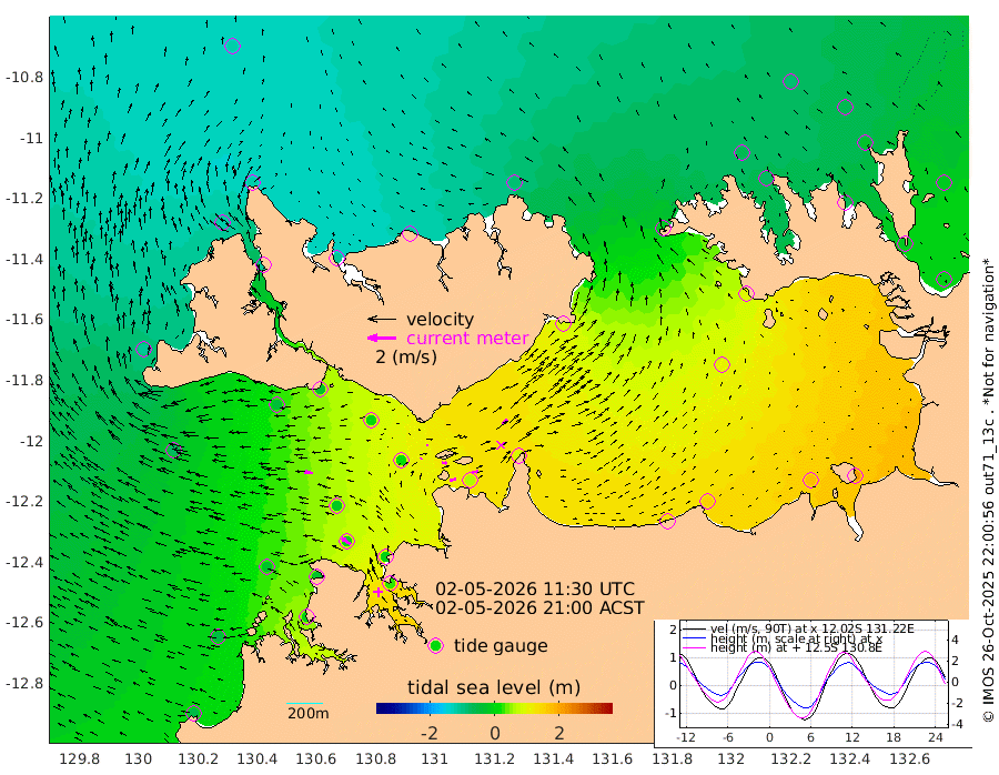 44cm/s 81T +4cm/s rms + 6cm/s 51T. Darwin_C1 52m 47cm/s 90T +4cm/s rms + 7cm/s -161T. Darwin_CW1 22m 9cm/s 56T +4cm/s rms + 8cm/s 61T. Darwin_CW2 34m 50cm/s 44T +3cm/s rms + 9cm/s 98T. Darwin_CW3 22m 36cm/s 93T +5cm/s rms + 7cm/s 88T. Darwin_C3 56m 11cm/s 65T +2cm/s rms + 9cm/s -126T. Darwin_CTbW 22m 63cm/s -84T +1cm/s rms + 1cm/s -47T. DARBGF 30m 77cm/s -54T +4cm/s rms + 3cm/s 80T. NRSDAR 19m -113cm Goodrich Bank -50cm Point Jenny -53cm Native Point -30cm Fish Reef -31cm Tapa Bay -107cm Point Fawcett (Offshore) -7cm Burge Point -35cm Munkunuwa -72cm Beagle A 10cm Parsons Bank -17cm Fenton Patches 17cm Hancox Shoal Area -4cm Nightcliff 28cm Darwin -8cm Charles Point Patches 66cm Glyde Point 124cm Chambers Bay 156cm Point Stuart 82cm Cape Hotham 106cm Christine Reef 179cm West Alligator Head 209cm East Field Island 96cm Two Hills Bay 84cm Camp Point -24cm Medina Inlet South -106cm South Barlow Point -122cm St. Asaph Bay -117cm Cape Van Dieman -112cm Snake Bay -108cm Cache Point -80cm Point Jahleel (Off) -18cm Cape Don -60cm Port Essington -68cm Smith Point - West -60cm NW Peacock Island -82cm North Of Jones Shoal -25cm Peacock Island -17cm Point David -58cm D'urville Point -9cm Copeland Island -22cm One Tree Point