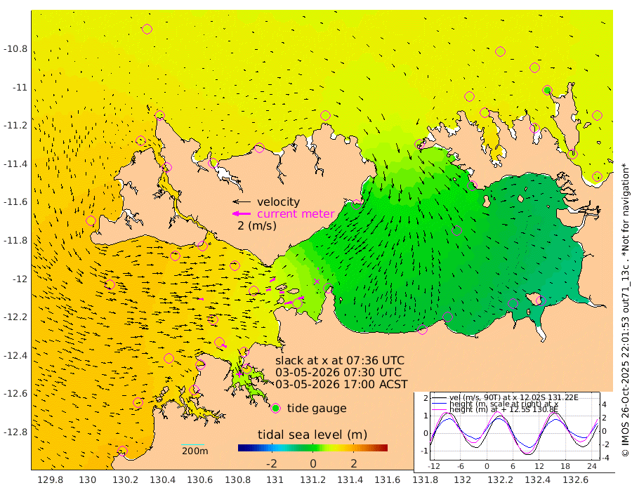84cm/s 78T +4cm/s rms + 6cm/s 51T. Darwin_C1 52m 64cm/s 82T +4cm/s rms + 7cm/s -161T. Darwin_CW1 22m 51cm/s 75T +4cm/s rms + 8cm/s 61T. Darwin_CW2 34m 11cm/s 87T +3cm/s rms + 9cm/s 98T. Darwin_CW3 22m 55cm/s 86T +5cm/s rms + 7cm/s 88T. Darwin_C3 56m 67cm/s 62T +2cm/s rms + 9cm/s -126T. Darwin_CTbW 22m 61cm/s 92T +1cm/s rms + 1cm/s -47T. DARBGF 30m 60cm/s 121T +4cm/s rms + 3cm/s 80T. NRSDAR 19m 80cm Goodrich Bank 140cm Point Jenny 144cm Native Point 142cm Fish Reef 146cm Tapa Bay 126cm Point Fawcett (Offshore) 147cm Burge Point 146cm Munkunuwa 142cm Beagle A 140cm Parsons Bank 144cm Fenton Patches 123cm Hancox Shoal Area 144cm Nightcliff 144cm Darwin 152cm Charles Point Patches 62cm Glyde Point -28cm Chambers Bay -51cm Point Stuart 28cm Cape Hotham -22cm Christine Reef -70cm West Alligator Head -106cm East Field Island -5cm Two Hills Bay 8cm Camp Point 149cm Medina Inlet South 131cm South Barlow Point 110cm St. Asaph Bay 88cm Cape Van Dieman 97cm Snake Bay 80cm Cache Point 73cm Point Jahleel (Off) 66cm Cape Don 80cm Port Essington 80cm Smith Point - West 77cm NW Peacock Island 77cm North Of Jones Shoal 28cm Peacock Island 74cm Point David 83cm D'urville Point 70cm Copeland Island 75cm One Tree Point