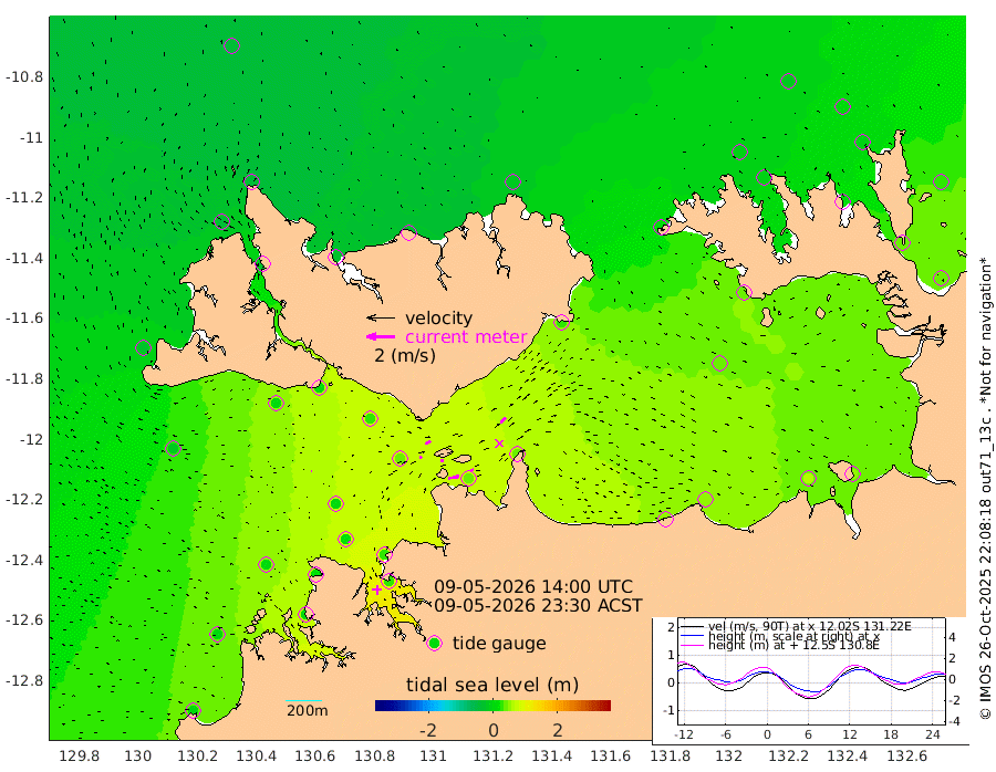77cm/s 78T +4cm/s rms + 6cm/s 51T. Darwin_C1 52m 23cm/s 92T +4cm/s rms + 7cm/s -161T. Darwin_CW1 22m 15cm/s 71T +4cm/s rms + 8cm/s 61T. Darwin_CW2 34m 49cm/s 43T +3cm/s rms + 9cm/s 98T. Darwin_CW3 22m 19cm/s 90T +5cm/s rms + 7cm/s 88T. Darwin_C3 56m 42cm/s 65T +2cm/s rms + 9cm/s -126T. Darwin_CTbW 22m 7cm/s -87T +1cm/s rms + 1cm/s -47T. DARBGF 30m 10cm/s -39T +4cm/s rms + 3cm/s 80T. NRSDAR 19m -38cm Goodrich Bank 5cm Point Jenny 4cm Native Point 1cm Fish Reef 19cm Tapa Bay -26cm Point Fawcett (Offshore) 8cm Burge Point 6cm Munkunuwa -15cm Beagle A 31cm Parsons Bank 8cm Fenton Patches 40cm Hancox Shoal Area 33cm Nightcliff 30cm Darwin 16cm Charles Point Patches 34cm Glyde Point 52cm Chambers Bay 52cm Point Stuart 40cm Cape Hotham 42cm Christine Reef 57cm West Alligator Head 56cm East Field Island 40cm Two Hills Bay 33cm Camp Point 8cm Medina Inlet South -27cm South Barlow Point -36cm St. Asaph Bay -36cm Cape Van Dieman -30cm Snake Bay -33cm Cache Point -19cm Point Jahleel (Off) 7cm Cape Don -6cm Port Essington -4cm Smith Point - West 1cm NW Peacock Island -14cm North Of Jones Shoal -2cm Peacock Island 37cm Point David 6cm D'urville Point 41cm Copeland Island 25cm One Tree Point