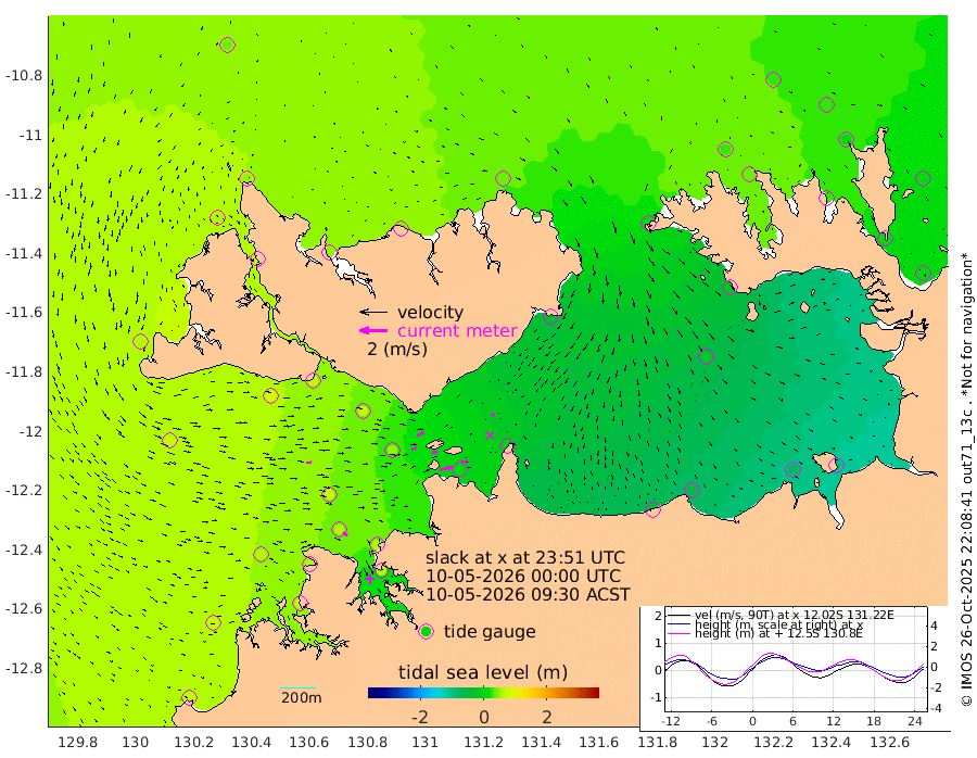 88cm/s 78T +4cm/s rms + 6cm/s 51T. Darwin_C1 52m 46cm/s 90T +4cm/s rms + 7cm/s -161T. Darwin_CW1 22m 36cm/s 73T +4cm/s rms + 8cm/s 61T. Darwin_CW2 34m 23cm/s 67T +3cm/s rms + 9cm/s 98T. Darwin_CW3 22m 37cm/s 88T +5cm/s rms + 7cm/s 88T. Darwin_C3 56m 52cm/s 64T +2cm/s rms + 9cm/s -126T. Darwin_CTbW 22m 36cm/s 90T +1cm/s rms + 1cm/s -47T. DARBGF 30m 35cm/s 118T +4cm/s rms + 3cm/s 80T. NRSDAR 19m 42cm Goodrich Bank 70cm Point Jenny 72cm Native Point 67cm Fish Reef 67cm Tapa Bay 63cm Point Fawcett (Offshore) 73cm Burge Point 84cm Munkunuwa 75cm Beagle A 70cm Parsons Bank 71cm Fenton Patches 53cm Hancox Shoal Area 66cm Nightcliff 58cm Darwin 58cm Charles Point Patches 11cm Glyde Point -44cm Chambers Bay -53cm Point Stuart -7cm Cape Hotham -22cm Christine Reef -60cm West Alligator Head -85cm East Field Island -21cm Two Hills Bay -25cm Camp Point 72cm Medina Inlet South 71cm South Barlow Point 61cm St. Asaph Bay 45cm Cape Van Dieman 47cm Snake Bay 40cm Cache Point 35cm Point Jahleel (Off) 21cm Cape Don 27cm Port Essington 35cm Smith Point - West 28cm NW Peacock Island 30cm North Of Jones Shoal 9cm Peacock Island 6cm Point David 30cm D'urville Point 3cm Copeland Island 10cm One Tree Point