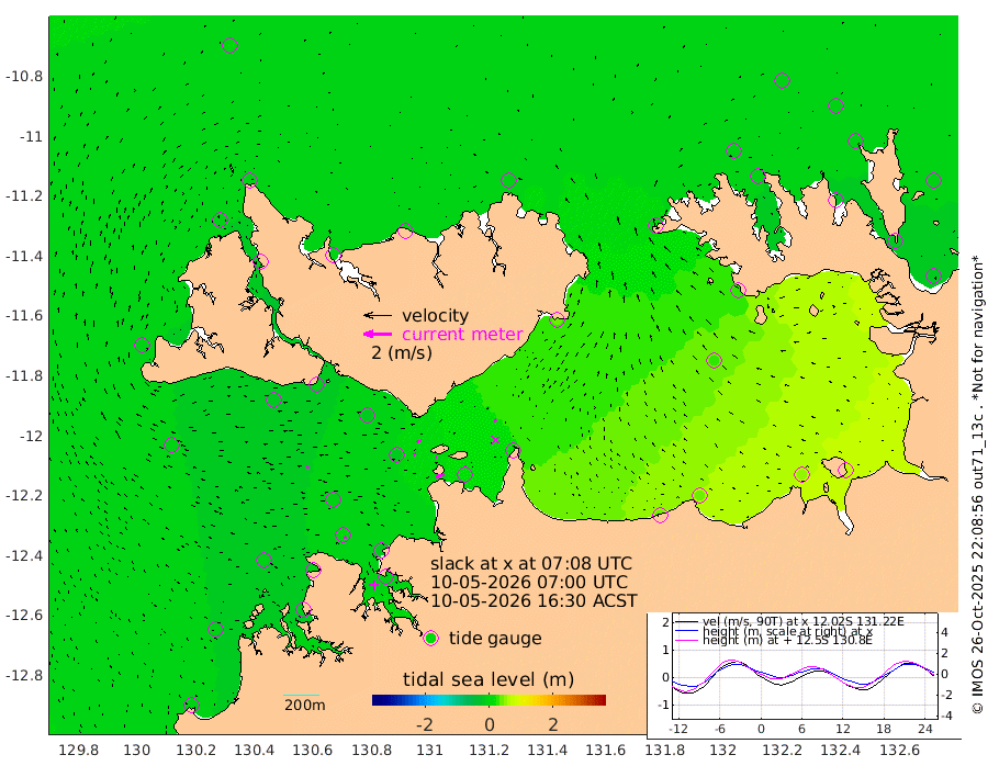 62cm/s -102T +4cm/s rms + 6cm/s 51T. Darwin_C1 52m 13cm/s -91T +4cm/s rms + 7cm/s -161T. Darwin_CW1 22m 16cm/s -111T +4cm/s rms + 8cm/s 61T. Darwin_CW2 34m 18cm/s -117T +3cm/s rms + 9cm/s 98T. Darwin_CW3 22m 4cm/s -97T +5cm/s rms + 7cm/s 88T. Darwin_C3 56m 35cm/s -116T +2cm/s rms + 9cm/s -126T. Darwin_CTbW 22m 20cm/s -85T +1cm/s rms + 1cm/s -47T. DARBGF 30m 20cm/s -64T +4cm/s rms + 3cm/s 80T. NRSDAR 19m 3cm Goodrich Bank -9cm Point Jenny -9cm Native Point -5cm Fish Reef -11cm Tapa Bay -4cm Point Fawcett (Offshore) -4cm Burge Point -22cm Munkunuwa -6cm Beagle A -19cm Parsons Bank -6cm Fenton Patches -13cm Hancox Shoal Area -15cm Nightcliff -1cm Darwin 3cm Charles Point Patches 18cm Glyde Point 39cm Chambers Bay 45cm Point Stuart 18cm Cape Hotham 32cm Christine Reef 50cm West Alligator Head 68cm East Field Island 26cm Two Hills Bay 36cm Camp Point -7cm Medina Inlet South -11cm South Barlow Point -5cm St. Asaph Bay -1cm Cape Van Dieman -3cm Snake Bay 3cm Cache Point 0cm Point Jahleel (Off) 6cm Cape Don -1cm Port Essington -9cm Smith Point - West -8cm NW Peacock Island -2cm North Of Jones Shoal -1cm Peacock Island -13cm Point David -12cm D'urville Point -15cm Copeland Island -7cm One Tree Point