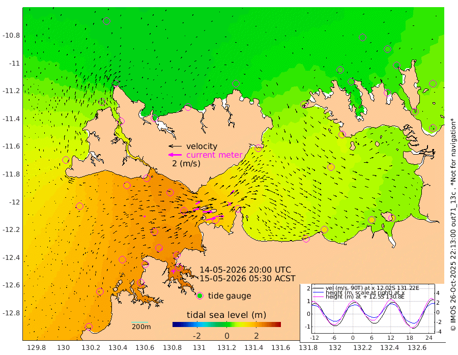 147cm/s 78T +4cm/s rms + 6cm/s 51T. Darwin_C1 52m 114cm/s 92T +4cm/s rms + 7cm/s -161T. Darwin_CW1 22m 94cm/s 73T +4cm/s rms + 8cm/s 61T. Darwin_CW2 34m 83cm/s 44T +3cm/s rms + 9cm/s 98T. Darwin_CW3 22m 147cm/s 89T +5cm/s rms + 7cm/s 88T. Darwin_C3 56m 73cm/s 66T +2cm/s rms + 9cm/s -126T. Darwin_CTbW 22m 27cm/s 75T +1cm/s rms + 1cm/s -47T. DARBGF 30m 19cm/s 100T +4cm/s rms + 3cm/s 80T. NRSDAR 19m -6cm Goodrich Bank 190cm Point Jenny 187cm Native Point 194cm Fish Reef 215cm Tapa Bay 89cm Point Fawcett (Offshore) 225cm Burge Point 190cm Munkunuwa 162cm Beagle A 216cm Parsons Bank 222cm Fenton Patches 226cm Hancox Shoal Area 240cm Nightcliff 241cm Darwin 221cm Charles Point Patches 179cm Glyde Point 154cm Chambers Bay 137cm Point Stuart 153cm Cape Hotham 144cm Christine Reef 147cm West Alligator Head 136cm East Field Island 121cm Two Hills Bay 128cm Camp Point 200cm Medina Inlet South 66cm South Barlow Point 42cm St. Asaph Bay -3cm Cape Van Dieman -2cm Snake Bay 3cm Cache Point 22cm Point Jahleel (Off) 67cm Cape Don 25cm Port Essington 29cm Smith Point - West 23cm NW Peacock Island 8cm North Of Jones Shoal 4cm Peacock Island 39cm Point David 29cm D'urville Point 44cm Copeland Island 36cm One Tree Point