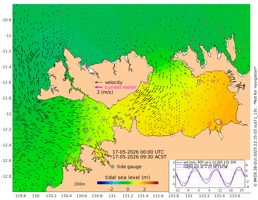 25cm/s 82T +4cm/s rms + 6cm/s 51T. Darwin_C1 52m 44cm/s 88T +4cm/s rms + 7cm/s -161T. Darwin_CW1 22m 4cm/s -112T +4cm/s rms + 8cm/s 61T. Darwin_CW2 34m 44cm/s 37T +3cm/s rms + 9cm/s 98T. Darwin_CW3 22m 28cm/s 98T +5cm/s rms + 7cm/s 88T. Darwin_C3 56m 5cm/s 83T +2cm/s rms + 9cm/s -126T. Darwin_CTbW 22m 59cm/s -83T +1cm/s rms + 1cm/s -47T. DARBGF 30m 73cm/s -54T +4cm/s rms + 3cm/s 80T. NRSDAR 19m -37cm Goodrich Bank 4cm Point Jenny 0cm Native Point 5cm Fish Reef 16cm Tapa Bay -36cm Point Fawcett (Offshore) 28cm Burge Point -17cm Munkunuwa -7cm Beagle A 21cm Parsons Bank 29cm Fenton Patches 50cm Hancox Shoal Area 45cm Nightcliff 52cm Darwin 35cm Charles Point Patches 96cm Glyde Point 172cm Chambers Bay 184cm Point Stuart 112cm Cape Hotham 162cm Christine Reef 209cm West Alligator Head 250cm East Field Island 127cm Two Hills Bay 130cm Camp Point 10cm Medina Inlet South -48cm South Barlow Point -45cm St. Asaph Bay -46cm Cape Van Dieman -46cm Snake Bay -32cm Cache Point -16cm Point Jahleel (Off) 23cm Cape Don -19cm Port Essington -21cm Smith Point - West -18cm NW Peacock Island -20cm North Of Jones Shoal -8cm Peacock Island -7cm Point David -22cm D'urville Point -2cm Copeland Island -3cm One Tree Point