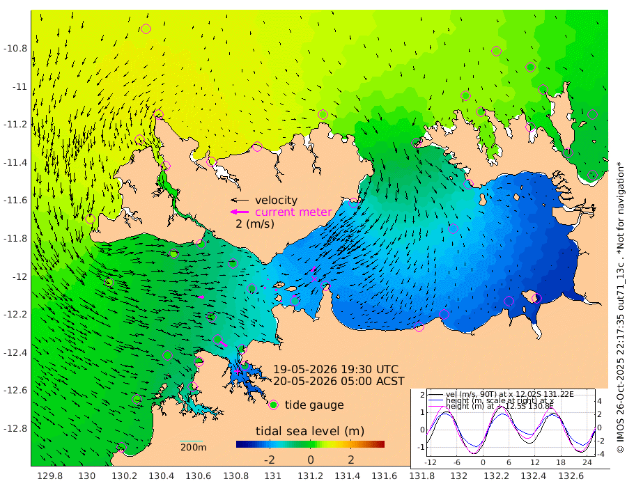 21cm/s -102T +4cm/s rms + 6cm/s 51T. Darwin_C1 52m 33cm/s -94T +4cm/s rms + 7cm/s -161T. Darwin_CW1 22m 18cm/s 71T +4cm/s rms + 8cm/s 61T. Darwin_CW2 34m 71cm/s -144T +3cm/s rms + 9cm/s 98T. Darwin_CW3 22m 20cm/s -81T +5cm/s rms + 7cm/s 88T. Darwin_C3 56m 7cm/s 59T +2cm/s rms + 9cm/s -126T. Darwin_CTbW 22m 85cm/s 95T +1cm/s rms + 1cm/s -47T. DARBGF 30m 93cm/s 126T +4cm/s rms + 3cm/s 80T. NRSDAR 19m 73cm Goodrich Bank 22cm Point Jenny 25cm Native Point 18cm Fish Reef 5cm Tapa Bay 80cm Point Fawcett (Offshore) -15cm Burge Point 45cm Munkunuwa 41cm Beagle A -20cm Parsons Bank -11cm Fenton Patches -47cm Hancox Shoal Area -28cm Nightcliff -48cm Darwin -19cm Charles Point Patches -112cm Glyde Point -204cm Chambers Bay -230cm Point Stuart -135cm Cape Hotham -187cm Christine Reef -258cm West Alligator Head -305cm East Field Island -156cm Two Hills Bay -157cm Camp Point 13cm Medina Inlet South 87cm South Barlow Point 93cm St. Asaph Bay 80cm Cape Van Dieman 75cm Snake Bay 64cm Cache Point 39cm Point Jahleel (Off) -26cm Cape Don 23cm Port Essington 30cm Smith Point - West 18cm NW Peacock Island 40cm North Of Jones Shoal 11cm Peacock Island -29cm Point David 19cm D'urville Point -36cm Copeland Island -23cm One Tree Point