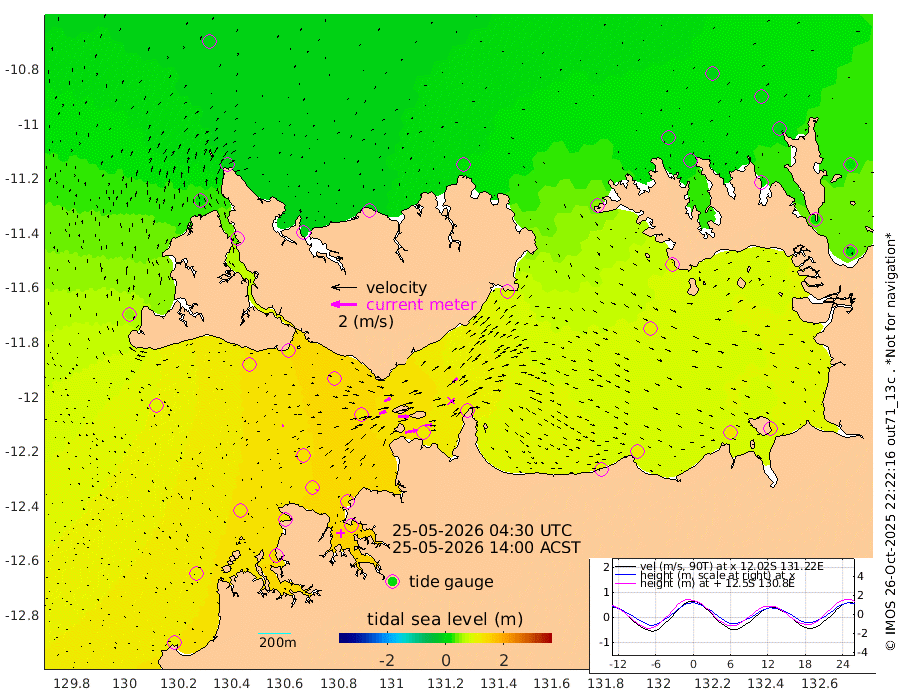 91cm/s 78T +4cm/s rms + 6cm/s 51T. Darwin_C1 52m 56cm/s 91T +4cm/s rms + 7cm/s -161T. Darwin_CW1 22m 57cm/s 72T +4cm/s rms + 8cm/s 61T. Darwin_CW2 34m 50cm/s 48T +3cm/s rms + 9cm/s 98T. Darwin_CW3 22m 82cm/s 90T +5cm/s rms + 7cm/s 88T. Darwin_C3 56m 54cm/s 65T +2cm/s rms + 9cm/s -126T. Darwin_CTbW 22m 9cm/s 61T +1cm/s rms + 1cm/s -47T. DARBGF 30m 5cm/s 38T +4cm/s rms + 3cm/s 80T. NRSDAR 19m -7cm Goodrich Bank 109cm Point Jenny 109cm Native Point 121cm Fish Reef 120cm Tapa Bay 50cm Point Fawcett (Offshore) 137cm Burge Point 110cm Munkunuwa 98cm Beagle A 126cm Parsons Bank 133cm Fenton Patches 123cm Hancox Shoal Area 130cm Nightcliff 143cm Darwin 124cm Charles Point Patches 121cm Glyde Point 115cm Chambers Bay 120cm Point Stuart 109cm Cape Hotham 103cm Christine Reef 131cm West Alligator Head 131cm East Field Island 100cm Two Hills Bay 94cm Camp Point 119cm Medina Inlet South 34cm South Barlow Point 17cm St. Asaph Bay -5cm Cape Van Dieman -2cm Snake Bay 1cm Cache Point 13cm Point Jahleel (Off) 48cm Cape Don 14cm Port Essington 13cm Smith Point - West 9cm NW Peacock Island -3cm North Of Jones Shoal 0cm Peacock Island 19cm Point David 12cm D'urville Point 19cm Copeland Island 19cm One Tree Point