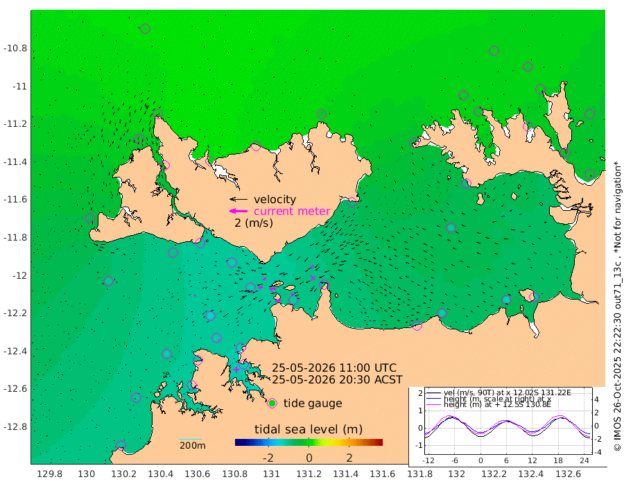 63cm/s -102T +4cm/s rms + 6cm/s 51T. Darwin_C1 52m 38cm/s -88T +4cm/s rms + 7cm/s -161T. Darwin_CW1 22m 45cm/s -107T +4cm/s rms + 8cm/s 61T. Darwin_CW2 34m 40cm/s -138T +3cm/s rms + 9cm/s 98T. Darwin_CW3 22m 66cm/s -90T +5cm/s rms + 7cm/s 88T. Darwin_C3 56m 37cm/s -115T +2cm/s rms + 9cm/s -126T. Darwin_CTbW 22m 12cm/s -109T +1cm/s rms + 1cm/s -47T. DARBGF 30m 8cm/s -85T +4cm/s rms + 3cm/s 80T. NRSDAR 19m 11cm Goodrich Bank -107cm Point Jenny -103cm Native Point -121cm Fish Reef -113cm Tapa Bay -48cm Point Fawcett (Offshore) -132cm Burge Point -100cm Munkunuwa -103cm Beagle A -120cm Parsons Bank -136cm Fenton Patches -120cm Hancox Shoal Area -131cm Nightcliff -133cm Darwin -115cm Charles Point Patches -116cm Glyde Point -117cm Chambers Bay -118cm Point Stuart -109cm Cape Hotham -106cm Christine Reef -129cm West Alligator Head -131cm East Field Island -98cm Two Hills Bay -88cm Camp Point -110cm Medina Inlet South -30cm South Barlow Point -16cm St. Asaph Bay 9cm Cape Van Dieman 10cm Snake Bay -1cm Cache Point -12cm Point Jahleel (Off) -45cm Cape Don -13cm Port Essington -16cm Smith Point - West -12cm NW Peacock Island 0cm North Of Jones Shoal -1cm Peacock Island -17cm Point David -16cm D'urville Point -20cm Copeland Island -18cm One Tree Point