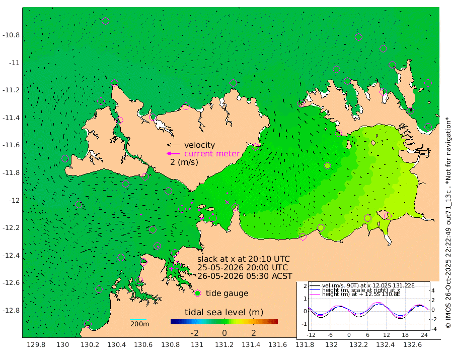 63cm/s -103T +4cm/s rms + 6cm/s 51T. Darwin_C1 52m 25cm/s -87T +4cm/s rms + 7cm/s -161T. Darwin_CW1 22m 27cm/s -106T +4cm/s rms + 8cm/s 61T. Darwin_CW2 34m 18cm/s -111T +3cm/s rms + 9cm/s 98T. Darwin_CW3 22m 29cm/s -93T +5cm/s rms + 7cm/s 88T. Darwin_C3 56m 39cm/s -115T +2cm/s rms + 9cm/s -126T. Darwin_CTbW 22m 31cm/s -86T +1cm/s rms + 1cm/s -47T. DARBGF 30m 31cm/s -61T +4cm/s rms + 3cm/s 80T. NRSDAR 19m -39cm Goodrich Bank -28cm Point Jenny -31cm Native Point -27cm Fish Reef -29cm Tapa Bay -46cm Point Fawcett (Offshore) -14cm Burge Point -38cm Munkunuwa -24cm Beagle A -24cm Parsons Bank -11cm Fenton Patches -12cm Hancox Shoal Area -14cm Nightcliff -19cm Darwin -26cm Charles Point Patches 11cm Glyde Point 49cm Chambers Bay 56cm Point Stuart 25cm Cape Hotham 49cm Christine Reef 66cm West Alligator Head 88cm East Field Island 28cm Two Hills Bay 32cm Camp Point -34cm Medina Inlet South -50cm South Barlow Point -44cm St. Asaph Bay -43cm Cape Van Dieman -48cm Snake Bay -36cm Cache Point -30cm Point Jahleel (Off) -18cm Cape Don -33cm Port Essington -33cm Smith Point - West -31cm NW Peacock Island -34cm North Of Jones Shoal -12cm Peacock Island -27cm Point David -33cm D'urville Point -23cm Copeland Island -28cm One Tree Point