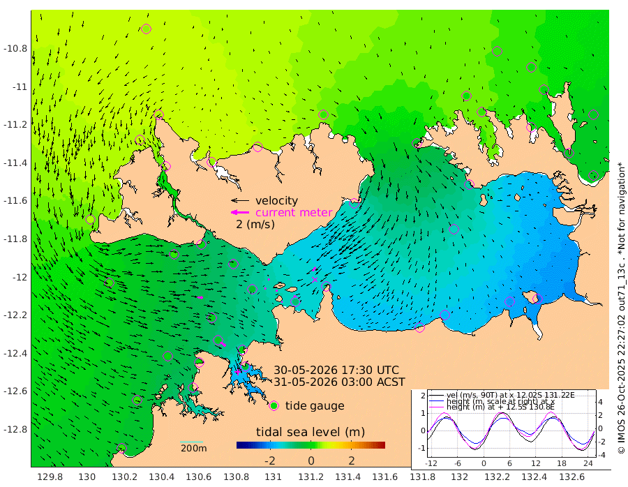 14cm/s -100T +4cm/s rms + 6cm/s 51T. Darwin_C1 52m 28cm/s -88T +4cm/s rms + 7cm/s -161T. Darwin_CW1 22m 15cm/s 72T +4cm/s rms + 8cm/s 61T. Darwin_CW2 34m 54cm/s -146T +3cm/s rms + 9cm/s 98T. Darwin_CW3 22m 16cm/s -78T +5cm/s rms + 7cm/s 88T. Darwin_C3 56m 17cm/s 60T +2cm/s rms + 9cm/s -126T. Darwin_CTbW 22m 65cm/s 95T +1cm/s rms + 1cm/s -47T. DARBGF 30m 72cm/s 125T +4cm/s rms + 3cm/s 80T. NRSDAR 19m 53cm Goodrich Bank 25cm Point Jenny 27cm Native Point 7cm Fish Reef 13cm Tapa Bay 57cm Point Fawcett (Offshore) -17cm Burge Point 28cm Munkunuwa 32cm Beagle A -17cm Parsons Bank -6cm Fenton Patches -26cm Hancox Shoal Area -11cm Nightcliff -41cm Darwin -15cm Charles Point Patches -84cm Glyde Point -141cm Chambers Bay -175cm Point Stuart -104cm Cape Hotham -129cm Christine Reef -196cm West Alligator Head -232cm East Field Island -119cm Two Hills Bay -114cm Camp Point 4cm Medina Inlet South 60cm South Barlow Point 68cm St. Asaph Bay 59cm Cape Van Dieman 52cm Snake Bay 46cm Cache Point 28cm Point Jahleel (Off) -19cm Cape Don 16cm Port Essington 26cm Smith Point - West 17cm NW Peacock Island 28cm North Of Jones Shoal 8cm Peacock Island -15cm Point David 19cm D'urville Point -18cm Copeland Island -15cm One Tree Point