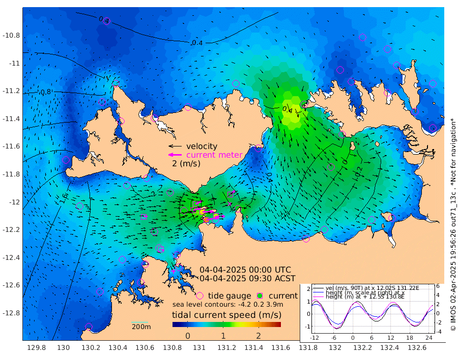 206cm/s 78T +4cm/s rms + 6cm/s 51T. Darwin_C1 52m 134cm/s 92T +4cm/s rms + 7cm/s -161T. Darwin_CW1 22m 116cm/s 73T +4cm/s rms + 8cm/s 61T. Darwin_CW2 34m 90cm/s 50T +3cm/s rms + 9cm/s 98T. Darwin_CW3 22m 168cm/s 89T +5cm/s rms + 7cm/s 88T. Darwin_C3 56m 110cm/s 65T +2cm/s rms + 9cm/s -126T. Darwin_CTbW 22m 57cm/s 85T +1cm/s rms + 1cm/s -47T. DARBGF 30m 52cm/s 111T +4cm/s rms + 3cm/s 80T. NRSDAR 19m 26cm Goodrich Bank 179cm Point Jenny 179cm Native Point 192cm Fish Reef 199cm Tapa Bay 120cm Point Fawcett (Offshore) 203cm Burge Point 212cm Munkunuwa 152cm Beagle A 209cm Parsons Bank 188cm Fenton Patches 193cm Hancox Shoal Area 205cm Nightcliff 217cm Darwin 202cm Charles Point Patches 126cm Glyde Point 55cm Chambers Bay 45cm Point Stuart 95cm Cape Hotham 54cm Christine Reef 46cm West Alligator Head 7cm East Field Island 65cm Two Hills Bay 50cm Camp Point 204cm Medina Inlet South 106cm South Barlow Point 78cm St. Asaph Bay 32cm Cape Van Dieman 39cm Snake Bay 31cm Cache Point 41cm Point Jahleel (Off) 64cm Cape Don 43cm Port Essington 47cm Smith Point - West 37cm NW Peacock Island 32cm North Of Jones Shoal 12cm Peacock Island 35cm Point David 44cm D'urville Point 34cm Copeland Island 38cm One Tree Point