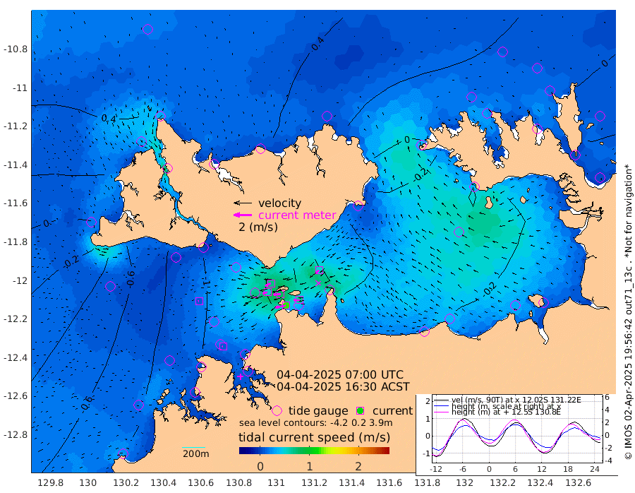 123cm/s -101T +4cm/s rms + 6cm/s 51T. Darwin_C1 52m 67cm/s -90T +4cm/s rms + 7cm/s -161T. Darwin_CW1 22m 56cm/s -107T +4cm/s rms + 8cm/s 61T. Darwin_CW2 34m 51cm/s -132T +3cm/s rms + 9cm/s 98T. Darwin_CW3 22m 80cm/s -91T +5cm/s rms + 7cm/s 88T. Darwin_C3 56m 70cm/s -115T +2cm/s rms + 9cm/s -126T. Darwin_CTbW 22m 9cm/s -107T +1cm/s rms + 1cm/s -47T. DARBGF 30m 10cm/s -109T +4cm/s rms + 3cm/s 80T. NRSDAR 19m 62cm Goodrich Bank -39cm Point Jenny -38cm Native Point -54cm Fish Reef -57cm Tapa Bay 17cm Point Fawcett (Offshore) -63cm Burge Point -69cm Munkunuwa -15cm Beagle A -86cm Parsons Bank -56cm Fenton Patches -79cm Hancox Shoal Area -72cm Nightcliff -85cm Darwin -57cm Charles Point Patches -60cm Glyde Point -50cm Chambers Bay -61cm Point Stuart -56cm Cape Hotham -41cm Christine Reef -70cm West Alligator Head -57cm East Field Island -49cm Two Hills Bay -27cm Camp Point -59cm Medina Inlet South 18cm South Barlow Point 41cm St. Asaph Bay 59cm Cape Van Dieman 52cm Snake Bay 57cm Cache Point 36cm Point Jahleel (Off) -1cm Cape Don 24cm Port Essington 21cm Smith Point - West 22cm NW Peacock Island 42cm North Of Jones Shoal 12cm Peacock Island -3cm Point David 15cm D'urville Point -8cm Copeland Island 3cm One Tree Point