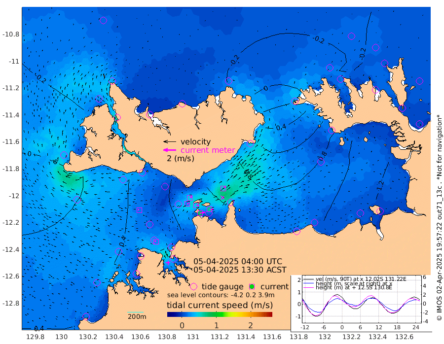 78cm/s 78T +4cm/s rms + 6cm/s 51T. Darwin_C1 52m 64cm/s 91T +4cm/s rms + 7cm/s -161T. Darwin_CW1 22m 22cm/s 72T +4cm/s rms + 8cm/s 61T. Darwin_CW2 34m 49cm/s 45T +3cm/s rms + 9cm/s 98T. Darwin_CW3 22m 42cm/s 92T +5cm/s rms + 7cm/s 88T. Darwin_C3 56m 47cm/s 66T +2cm/s rms + 9cm/s -126T. Darwin_CTbW 22m 17cm/s -75T +1cm/s rms + 1cm/s -47T. DARBGF 30m 25cm/s -50T +4cm/s rms + 3cm/s 80T. NRSDAR 19m -17cm Goodrich Bank 57cm Point Jenny 54cm Native Point 56cm Fish Reef 59cm Tapa Bay 18cm Point Fawcett (Offshore) 70cm Burge Point 40cm Munkunuwa 45cm Beagle A 55cm Parsons Bank 67cm Fenton Patches 67cm Hancox Shoal Area 72cm Nightcliff 68cm Darwin 54cm Charles Point Patches 89cm Glyde Point 128cm Chambers Bay 138cm Point Stuart 95cm Cape Hotham 124cm Christine Reef 157cm West Alligator Head 173cm East Field Island 103cm Two Hills Bay 95cm Camp Point 51cm Medina Inlet South -7cm South Barlow Point -6cm St. Asaph Bay -19cm Cape Van Dieman -22cm Snake Bay -7cm Cache Point 2cm Point Jahleel (Off) 32cm Cape Don -6cm Port Essington -5cm Smith Point - West -7cm NW Peacock Island -10cm North Of Jones Shoal -4cm Peacock Island -4cm Point David -9cm D'urville Point -3cm Copeland Island -1cm One Tree Point