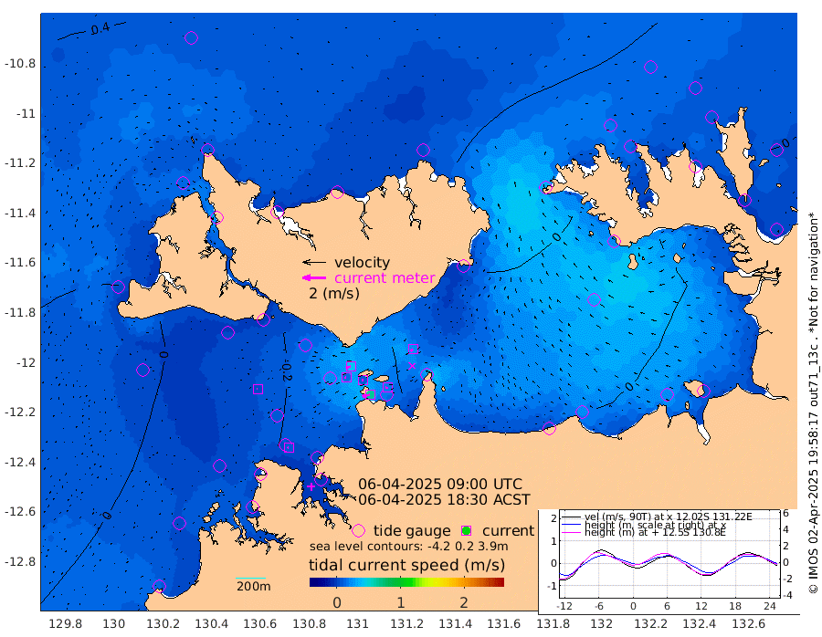 66cm/s -101T +4cm/s rms + 6cm/s 51T. Darwin_C1 52m 18cm/s -88T +4cm/s rms + 7cm/s -161T. Darwin_CW1 22m 13cm/s -109T +4cm/s rms + 8cm/s 61T. Darwin_CW2 34m 24cm/s -129T +3cm/s rms + 9cm/s 98T. Darwin_CW3 22m 9cm/s -92T +5cm/s rms + 7cm/s 88T. Darwin_C3 56m 42cm/s -116T +2cm/s rms + 9cm/s -126T. Darwin_CTbW 22m 7cm/s -85T +1cm/s rms + 1cm/s -47T. DARBGF 30m 8cm/s -74T +4cm/s rms + 3cm/s 80T. NRSDAR 19m 43cm Goodrich Bank 5cm Point Jenny 8cm Native Point -3cm Fish Reef 5cm Tapa Bay 24cm Point Fawcett (Offshore) 7cm Burge Point -2cm Munkunuwa 12cm Beagle A -9cm Parsons Bank 1cm Fenton Patches -5cm Hancox Shoal Area -2cm Nightcliff 1cm Darwin 13cm Charles Point Patches -4cm Glyde Point -12cm Chambers Bay -22cm Point Stuart -11cm Cape Hotham -8cm Christine Reef -27cm West Alligator Head -22cm East Field Island -15cm Two Hills Bay 8cm Camp Point 5cm Medina Inlet South 28cm South Barlow Point 35cm St. Asaph Bay 41cm Cape Van Dieman 41cm Snake Bay 37cm Cache Point 27cm Point Jahleel (Off) 10cm Cape Don 21cm Port Essington 15cm Smith Point - West 17cm NW Peacock Island 28cm North Of Jones Shoal 8cm Peacock Island 7cm Point David 12cm D'urville Point 3cm Copeland Island 10cm One Tree Point